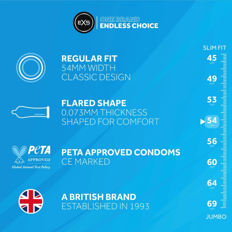 EXS Regular Classic – Opakowanie 100 prezerwatyw gładkich, 54 mm