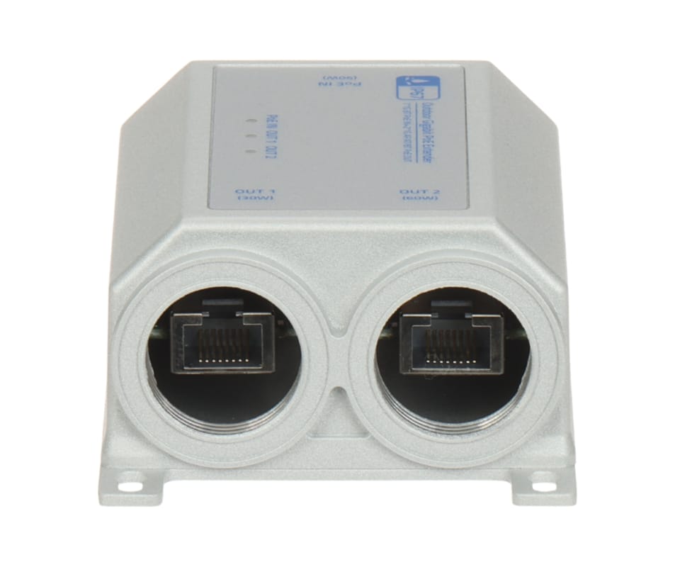 Extender SPT-POE/2-POE-1G-IP67 został zaprojektowany, aby rozszerzyć Power over Ethernet (PoE) i łączność sieciową w trudnych warunkach. Pojedyncze wejście Gigabit PoE dzieli na dwa niezależne wyjścia Gigabit PoE, obsługując przy tym standardy IEEE 802.3af/at. Dzięki wytrzymałej obudowie o stopniu ochrony IP67 idealnie nadaje się do zastosowań zewnętrznych,przemysłowych lub w wysokiej wilgotności.