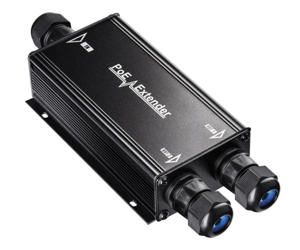 Extender POE+ posiada porty Gigabitowe ( 10/100/100 Mbps) na wejściu i wyjściu. Dzięki temu można uzyskać przesył na danych na najwyższym poziomie. Urzadzenie możemy też zamocować na ścianie za pomoca wkrętów. Bardzo przydatna jest tutaj funckaj Plug & Play- wystarczy podpiąć kable i dokręcić nakretki uszczelniające.