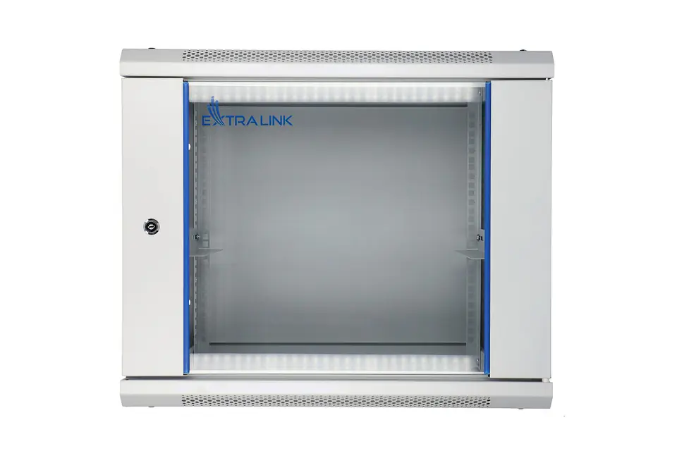 Szafa firmy Extralink jest przeznaczona do montażu naściennego w biurach, serwerowniach sieciowych oraz pomieszczeniach sterowania instalacjami CCTV. Ściany zewnętrzne zostały wykonane z blachy stalowej walcowanej na zimno, natomiast przednie drzwi posiadają szybę ze szkła hartowanego z możliwością otwierania na lewą bądź prawą stronę. W skład zestawu wchodzi komplet kluczyków, nakrętki kwadratowe M6 do szyny rack, zestaw do skręcenia szafy oraz pełny zestaw śrub.