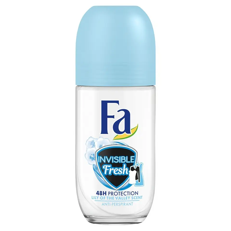 Antyperspirant Fa Invisible Fresh o zapachu konwalii majowej, z technologią przeciwdziałającą powstawaniu śladów na ubraniach. Formuła bez alkoholu zapewnia długotrwałą ochronę przed poceniem i przykrym zapachem do 48h.