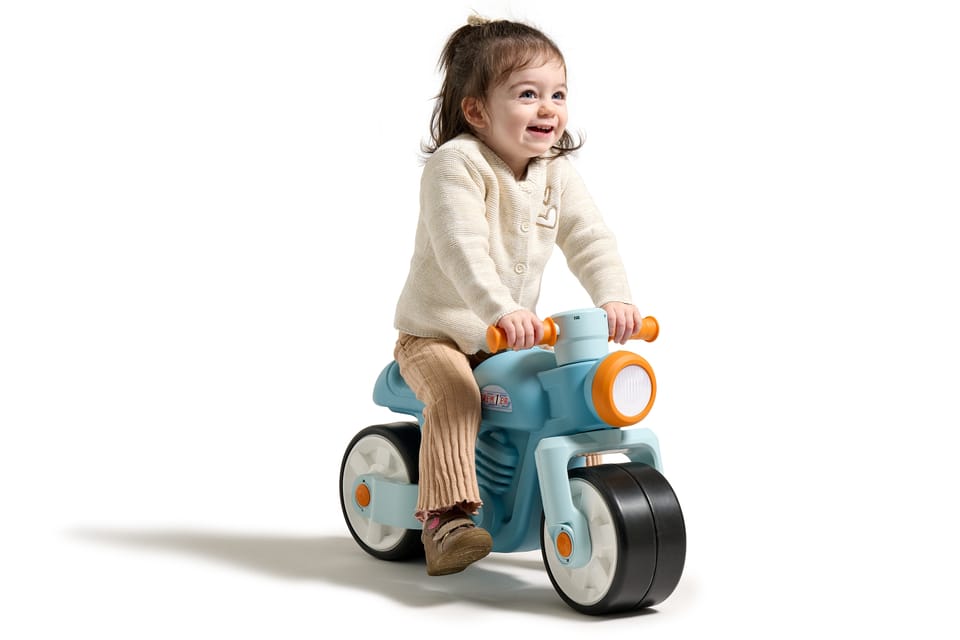 Nowa wersja uroczego motorka biegowego Falk. Wyposażony w duże kółka zapewniające dziecku niezbędną stabilność a elastomerowa powłoka motorka sprawia że jest on bardziej odporny na zarysowania czy inne uszkodzenia. Idealny do użytku wewnątrz i na zewnątrz