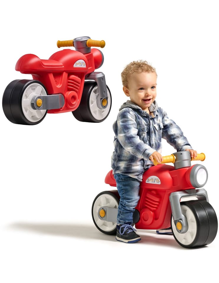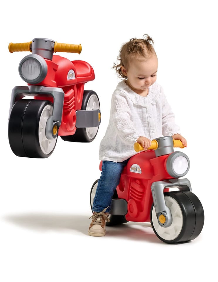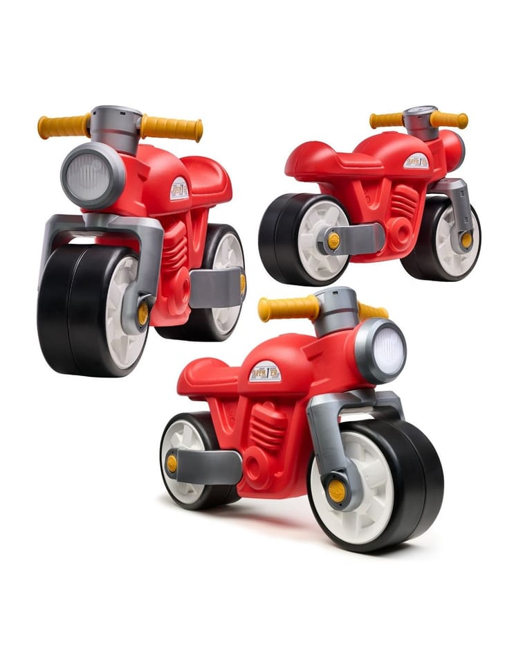 Jeździk Motocykl Vintage od renomowanej marki FALK to wyjątkowy pojazd, który łączy w sobie odważny design retro z nowoczesną funkcjonalnością. Ten czerwony jednoślad, oznaczony numerem referencyjnym 450S, został zaprojektowany z myślą o dzieciach w wieku od 1 do 3 lat. Jest to zabawka w pełni ekologiczna, wyprodukowana w 100% we Francji z plastiku pochodzącego z recyklingu. Wybierając ten produkt, dbasz o środowisko naturalne już od pierwszych kroków swojego dziecka. Motocykl został wyposażony w szerokie, ciche i antypoślizgowe koła, które gwarantują niezbędną stabilność podczas nauki utrzymywania równowagi. Konstrukcja kół sprawia, że nie zostawiają one śladów na podłodze, co czyni jeździk idealnym wyborem zarówno do zabawy wewnątrz domu, jak i na świeżym powietrzu. Ergonomiczny kształt wspiera rozwój motoryki dziecka, a stylowy wygląd przyciąga wzrok i zachęca do aktywnego spędzania czasu. To bezpieczny i trwały bolid dla małego kierowcy.