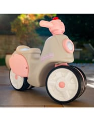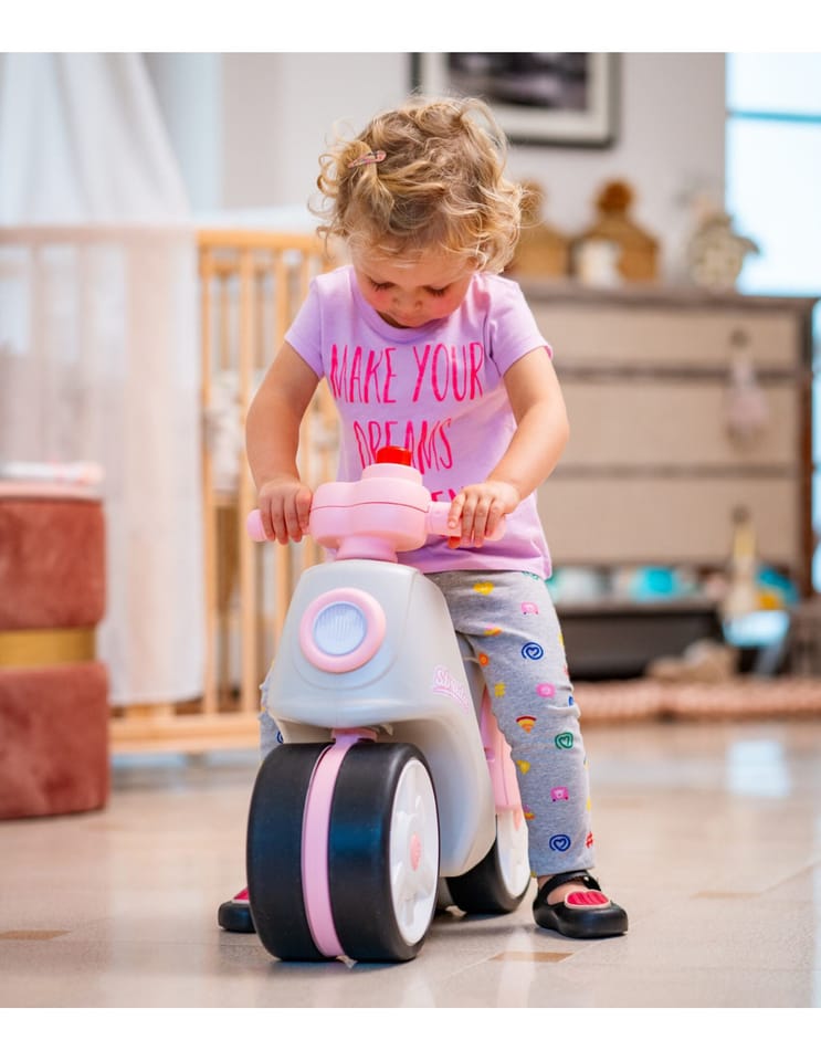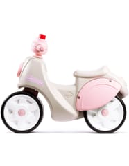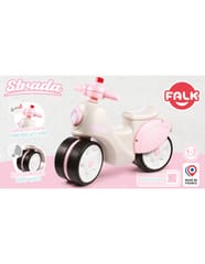 Jeździk Skuter Strada w pastelowym, kremowo-różowym kolorze od marki FALK to wyjątkowy pojazd dla najmłodszych, łączący urok zabawek retro z lat 70 z nowoczesnym designem. Wyprodukowany w 100% we Francji, zapewnia stabilność i pełne bezpieczeństwo dzięki szerokim kołom pokrytym powłoką z elastomeru. Takie rozwiązanie gwarantuje niezwykle cichą jazdę, co pozwala na komfortowe użytkowanie skutera zarówno w domu, jak i na zewnątrz. Kierownica wyposażona w manualny klakson dostarcza dodatkowej radości podczas codziennej zabawy.