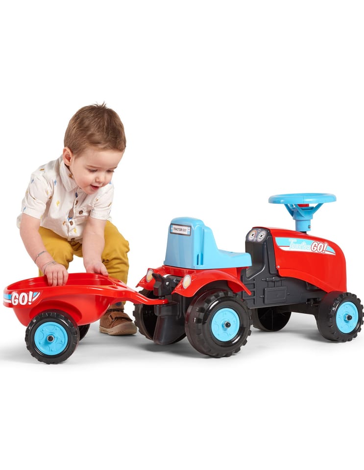 Czerwony jeździk Tractor Go! od renomowanej marki FALK to idealny pierwszy pojazd dla każdego małego odkrywcy. Ten uroczy traktor został zaprojektowany z myślą o najmłodszych dzieciach, zapewniając im bezpieczną i radosną zabawę. Dzięki dołączonej przyczepce, maluch może przewozić swoje ulubione zabawki, klocki czy skarby znalezione podczas spaceru. Wyprodukowany we Francji, charakteryzuje się wysoką jakością wykonania i dbałością o detale. Zestaw zawiera dodatkowe naklejki, które pozwalają na personalizację pojazdu, nadając mu indywidualny charakter.
