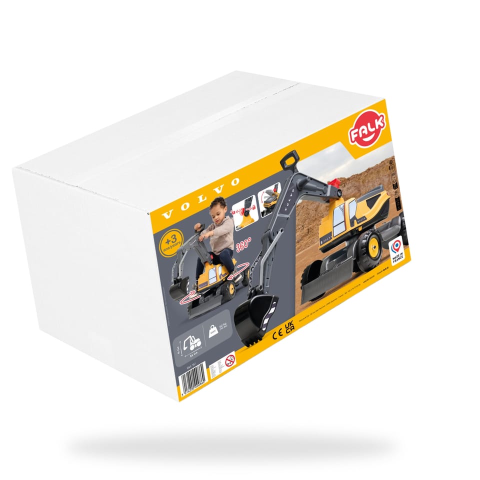 Realistyczna koparka Volvo od FALK Każdy detal został zaprojektowany z wizją i troską, a koparka wiernie przypomina prawdziwą wersję. Koparka Volvo to bardzo solidna konstrukcja i wysokiej jakości trwałe materiały. Kabina obraca się o 360° a łyżka koparki jest obrotowa. Zabawka jest bardzo zwrotna, łatwa w obsłudze - doskonale sprawdzi się w ogrodzie czy na plaży.