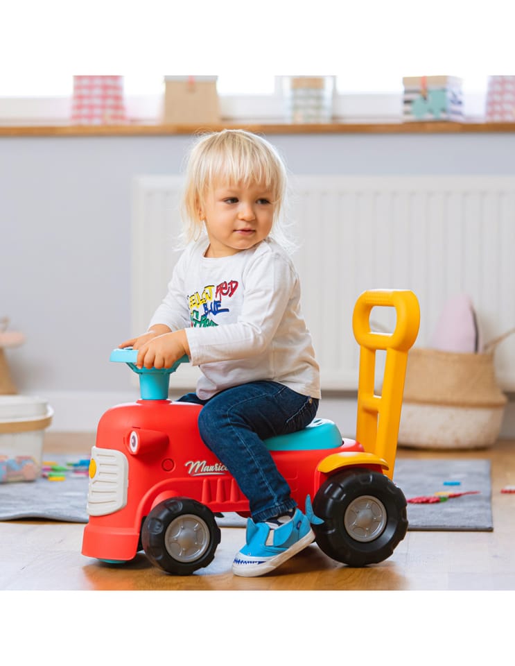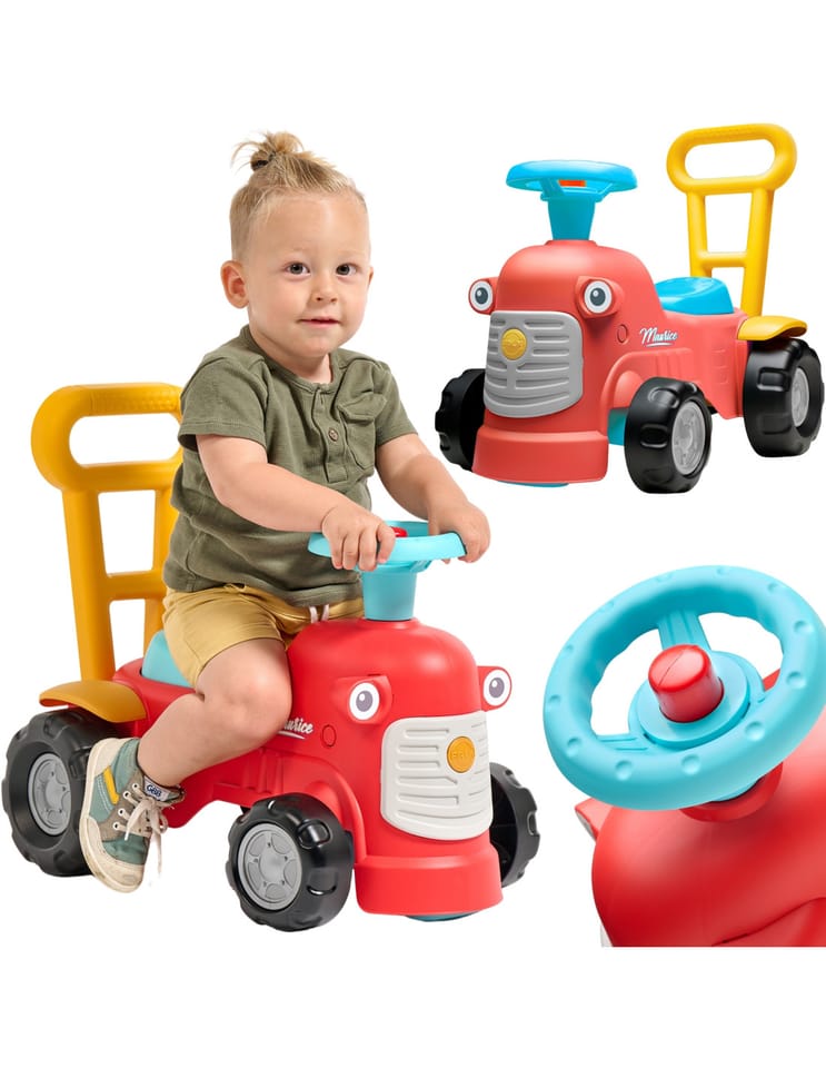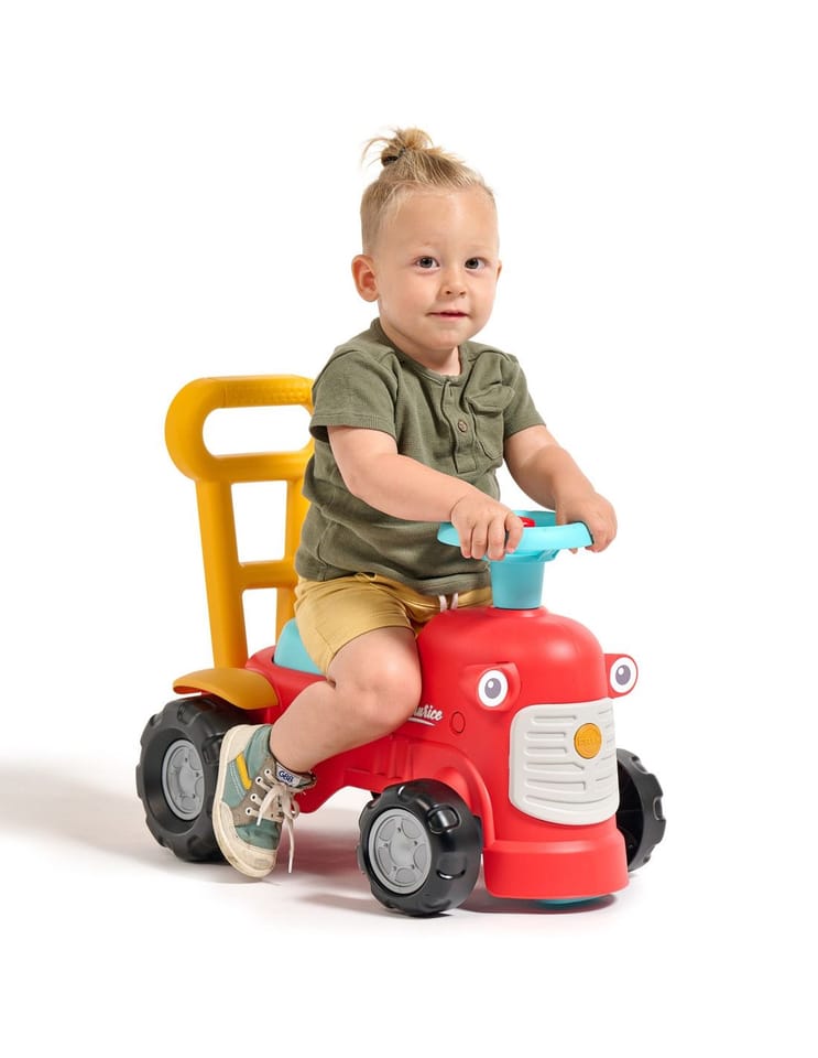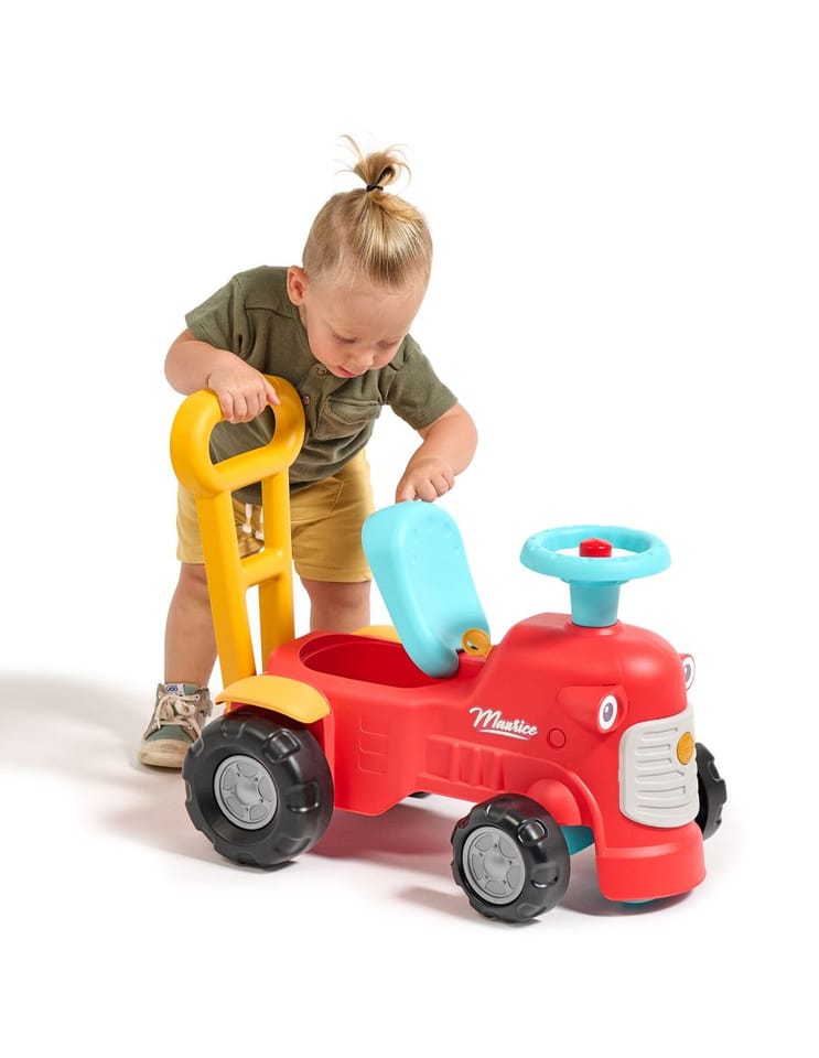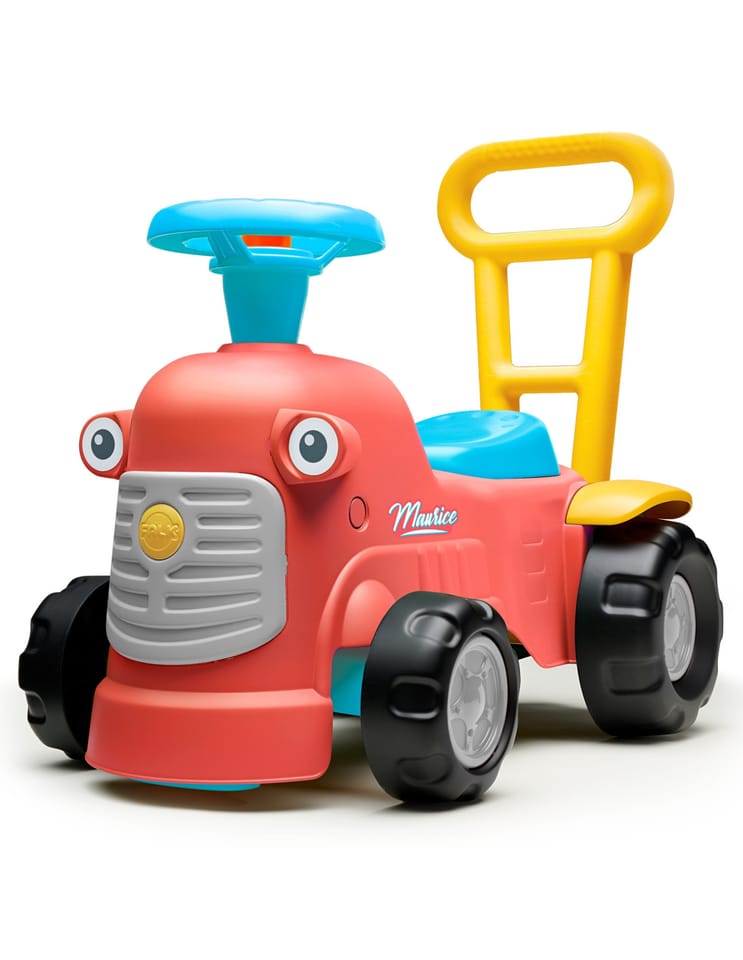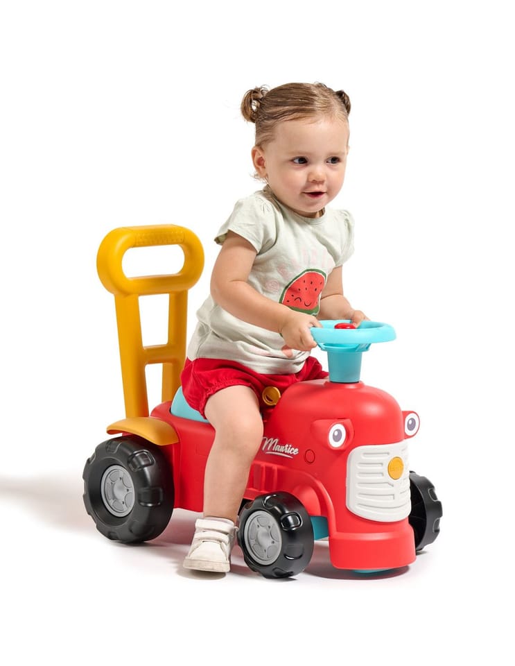 Uroczy i pełen pomysłowości jeździk traktorek Maurice w odcieniu koralowej czerwieni to idealny towarzysz dla dzieci od 12 miesięcy, wspierający je aż do stawiania pierwszych kroków. Dzięki ergonomicznej rączce do pchania zabawka świetnie pomaga maluchom w nauce chodzenia. Ten wyjątkowy pojazd został wyprodukowany we Francji z wykorzystaniem ponad 90% plastiku pochodzącego z recyklingu. Posiada kierownicę wyposażoną w klakson oraz klikający kluczyk dźwiękowy, co gwarantuje mnóstwo angażującej zabawy i stymulacji dla najmłodszych.