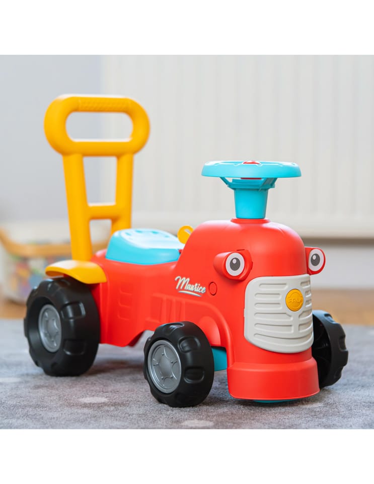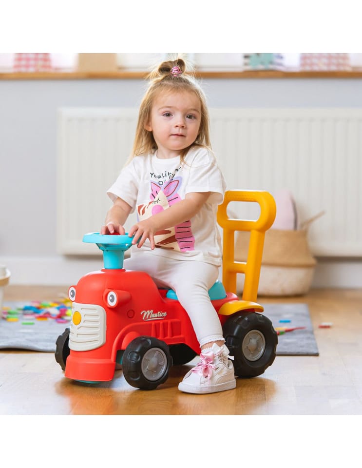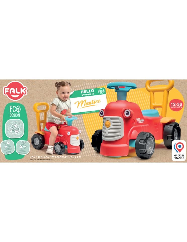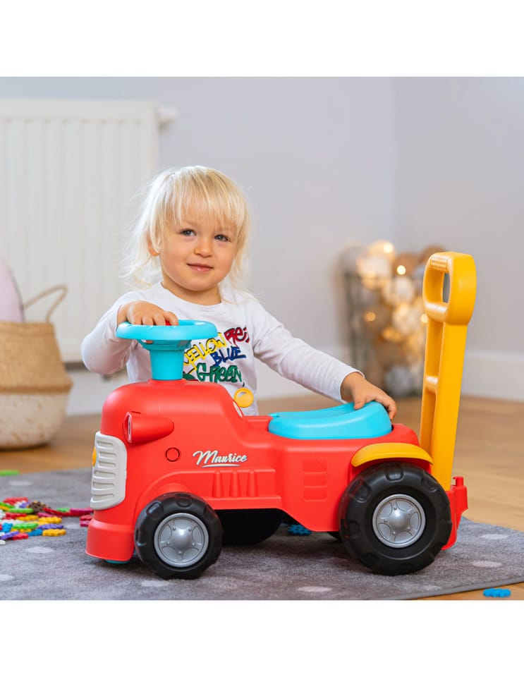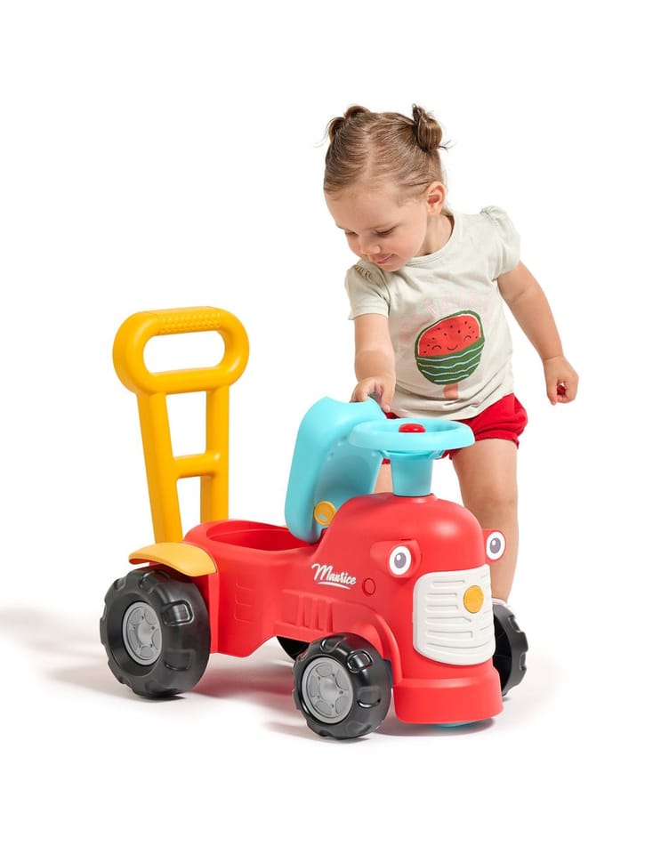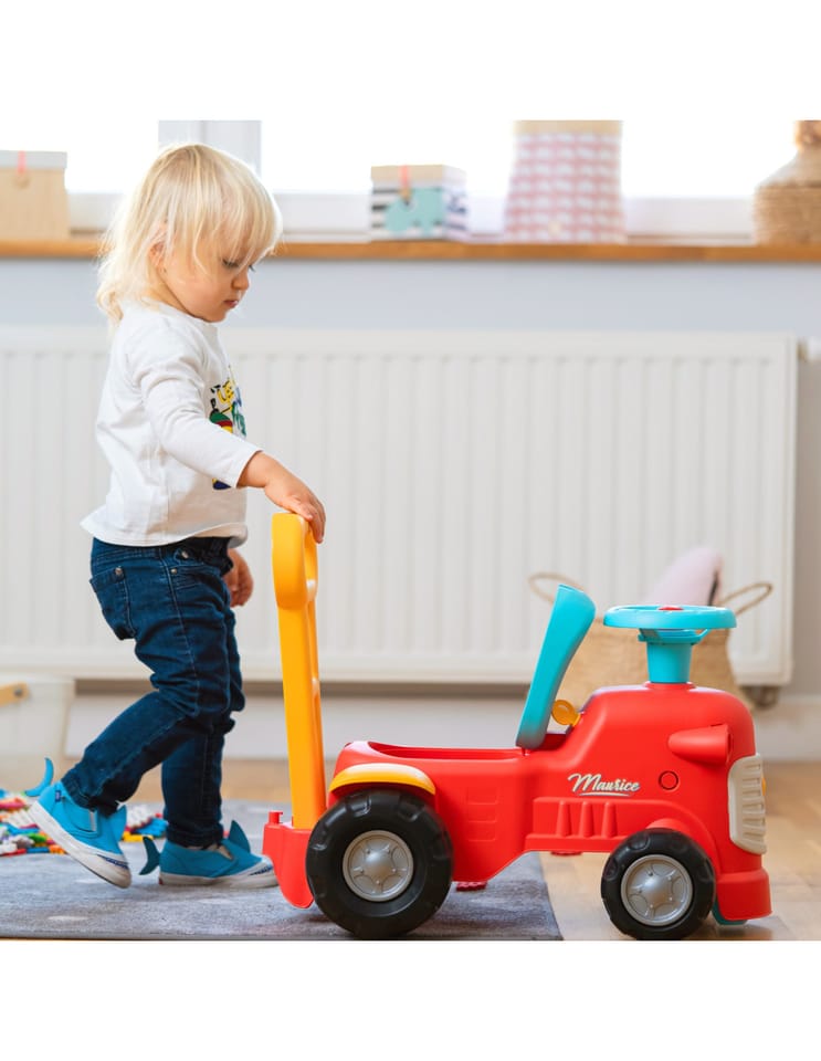 Uroczy i pełen pomysłowości jeździk traktorek Maurice w odcieniu koralowej czerwieni to idealny towarzysz dla dzieci od 12 miesięcy, wspierający je aż do stawiania pierwszych kroków. Dzięki ergonomicznej rączce do pchania zabawka świetnie pomaga maluchom w nauce chodzenia. Ten wyjątkowy pojazd został wyprodukowany we Francji z wykorzystaniem ponad 90% plastiku pochodzącego z recyklingu. Posiada kierownicę wyposażoną w klakson oraz klikający kluczyk dźwiękowy, co gwarantuje mnóstwo angażującej zabawy i stymulacji dla najmłodszych.