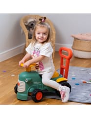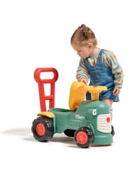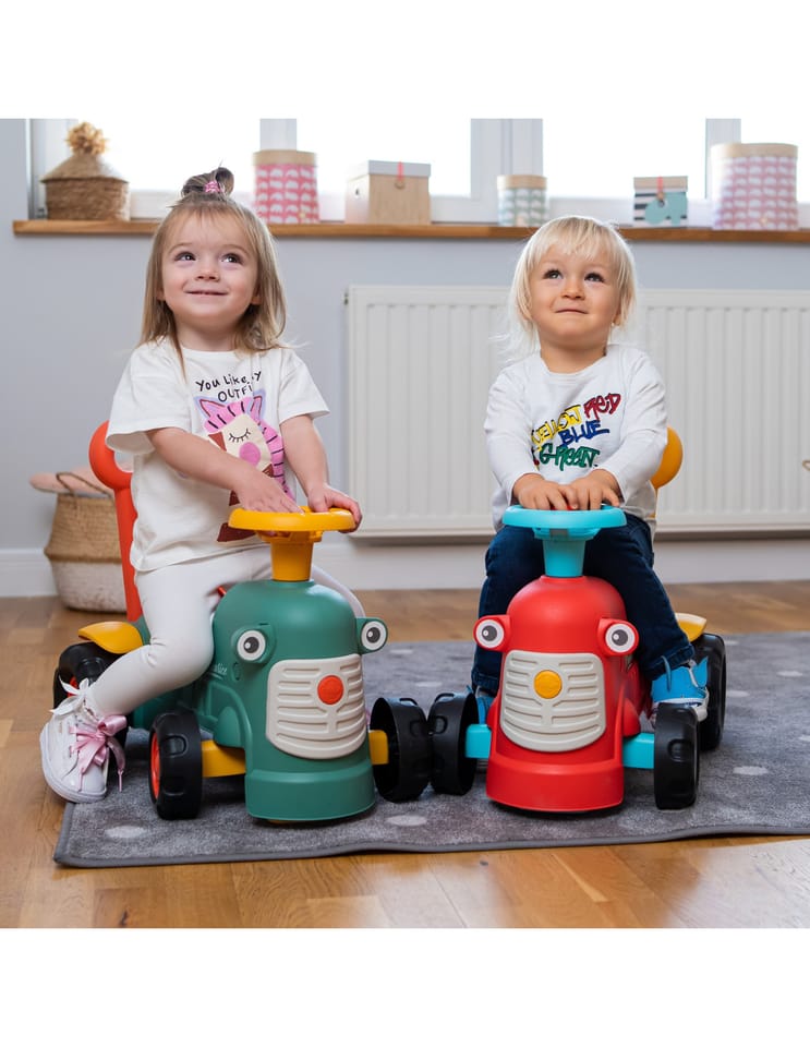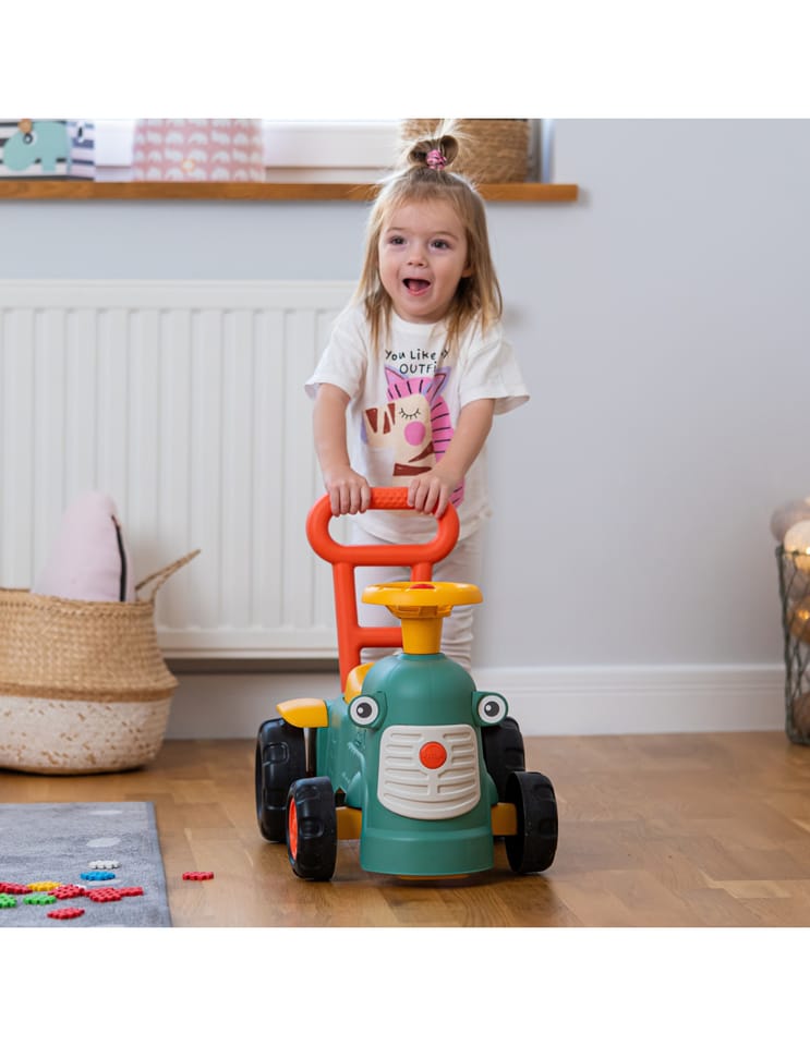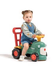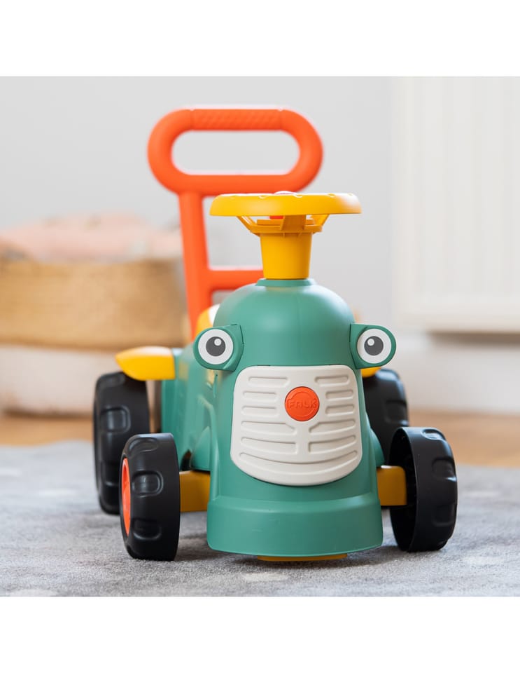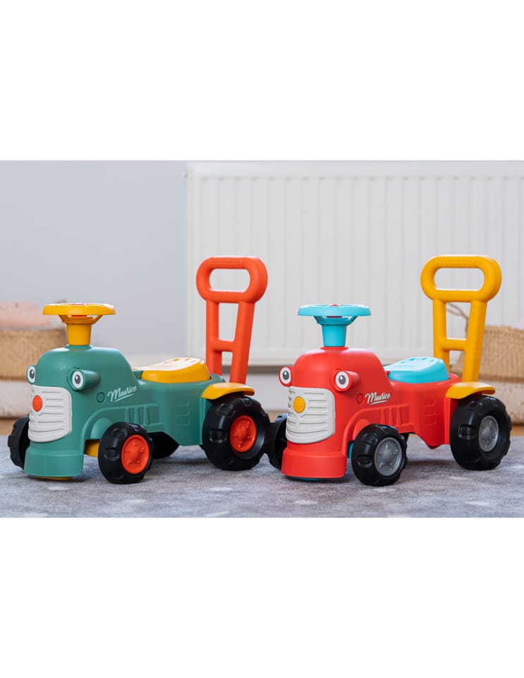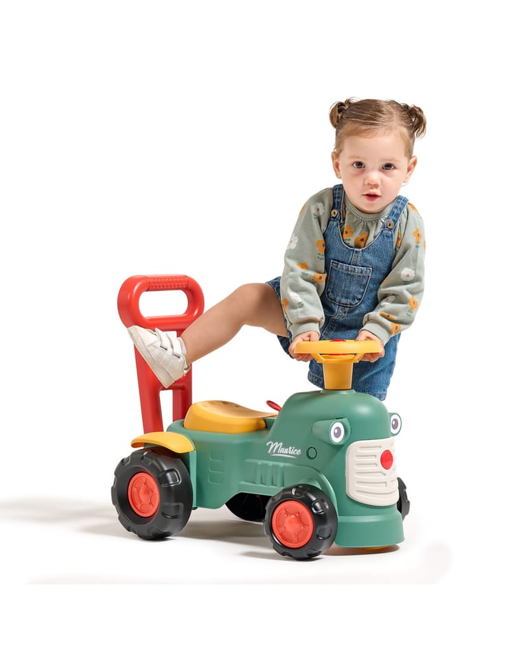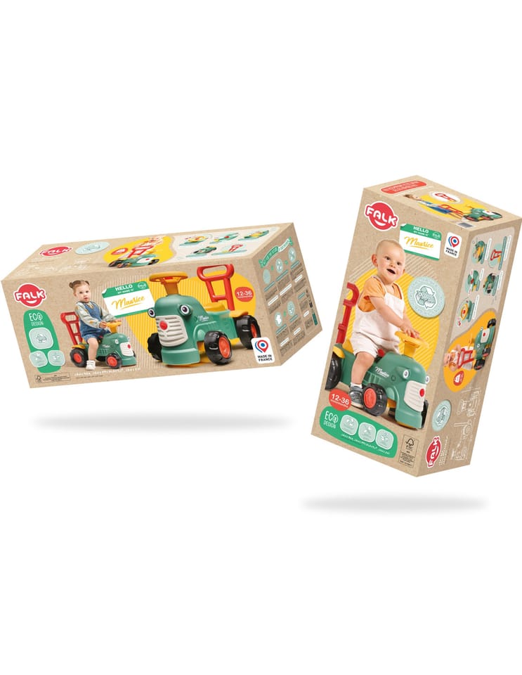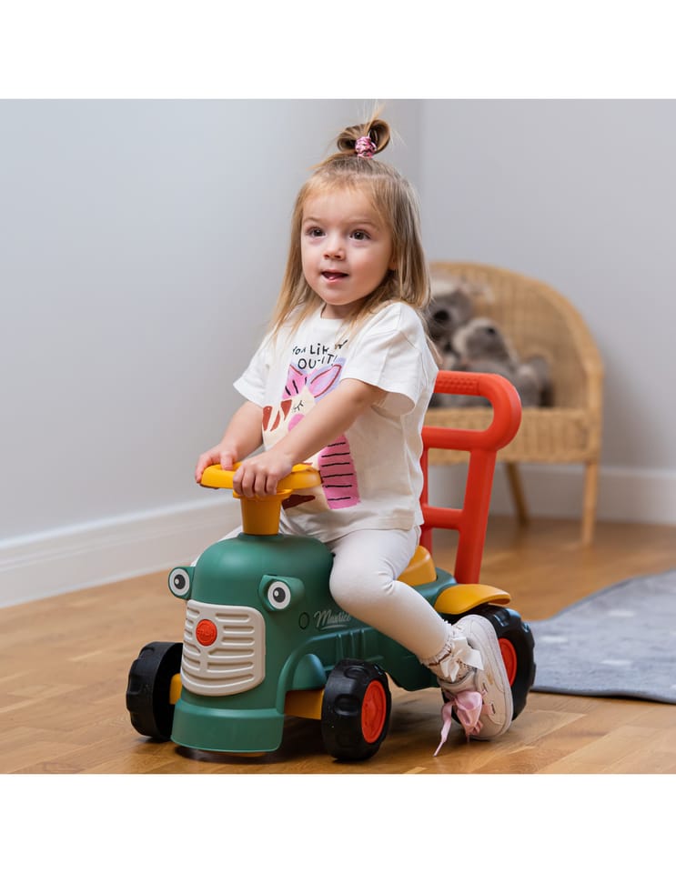 Uroczy i pełen pomysłowości jeździk traktorek Maurice to idealny towarzysz dla dzieci od 12 miesięcy aż do ich pierwszych kroków. Dzięki specjalnej ergonomicznej rączce pomaga maluchom w nauce chodzenia i stawianiu pewnych kroków. Ten wyjątkowy pojazd został wyprodukowany we Francji z wykorzystaniem co najmniej 90% plastiku pochodzącego z recyklingu. Posiada kierownicę z klaksonem, otwieraną skrytkę na skarby, dźwiękowy kluczyk oraz skrętne koła, co gwarantuje mnóstwo angażującej zabawy każdego dnia. Zabawka jest w pełni bezpieczna dla najmłodszych, ponieważ nie zawiera szkodliwych substancji takich jak BPA, ftalany ani PVC.