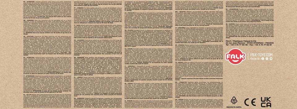 Falk jest czołowym europejskim producentem wysokiej jakości pojazdów na pedały. W ofercie firmy znajdują się między innymi traktory na licencji takich marek jak Claas, Renault, McCormick, Kubota, Case IH i innych. Wszystkie pojazdy produkowane są we Francji z wysokiej jakości materiałów.