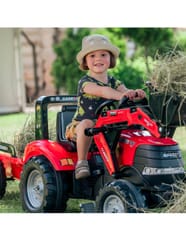 Traktor na pedały z przyczepą Case producenta FALK to spełnienie marzeń niejednego małego traktorzysty i budowniczego. Starannie wykonany, z dbałością o najmniejszy szczegół! Żaden Farmer by takim nie pogardził. Pojazd wykonany z najwyższej jakości tworzywa przeznaczony dla dzieci w wieku od 3 lat. Pojazd jest wyposażony odpinaną przyczepę z panelami oraz kierownicę z klaksonem. Koła traktorka zostały wykonane z wysokiej jakości plastiku.