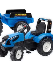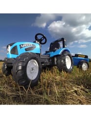 Traktor na pedały Landini to wyjątkowy pojazd od renomowanej marki FALK, będący wierną repliką modelu Landini Seria 7. Ten imponujący niebieski ciągnik został zaprojektowany z myślą o małych poszukiwaczach przygód w wieku od 3 do 7 lat. Wyprodukowany w 100% we Francji, charakteryzuje się solidnym wykonaniem, które jest w stanie sprostać energii "małych awanturników". To idealna platforma do zabawy na świeżym powietrzu, łącząca aktywność fizyczną z rozwijaniem pasji do motoryzacji i rolnictwa. Zestaw wyposażony jest w odczepianą przyczepę z burtami (ridelles), która pozwala na przewożenie piasku, liści, zabawek czy innych skarbów znalezionych w ogrodzie. Komfort prowadzenia zapewnia skrętna kierownica z wbudowanym klaksonem, dzięki któremu mały kierowca może ostrzegać przechodniów i zaznaczać swoją obecność. Traktor Landini to zabawka, która rośnie wraz z dzieckiem, oferując niekończące się możliwości zabawy w farmera lub budowlańca.