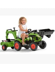 Traktorek Farmer z przyczepką CLAAS producenta Falk to spełnienie marzeń niejednego małego traktorzysty. Starannie wykonany, z dbałością o najmniejszy szczegół!! Żaden Farmer by takim nie pogardził. Pojazd na pedały stanowi idealny prezent dla każdego malucha. Najnowszy traktor CLAAS dla dzieci z łyżką, ładowarką i przyczepą wykonany jest z wysokiej jakości tworzywa sztucznego. Pojazd przeznaczony jest dla dzieci w wieku od 2 lat. Każdy młody traktorzysta pokocha ten model, pojazd wykonany jest w oryginalnej kolorystyce.