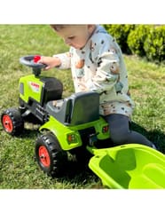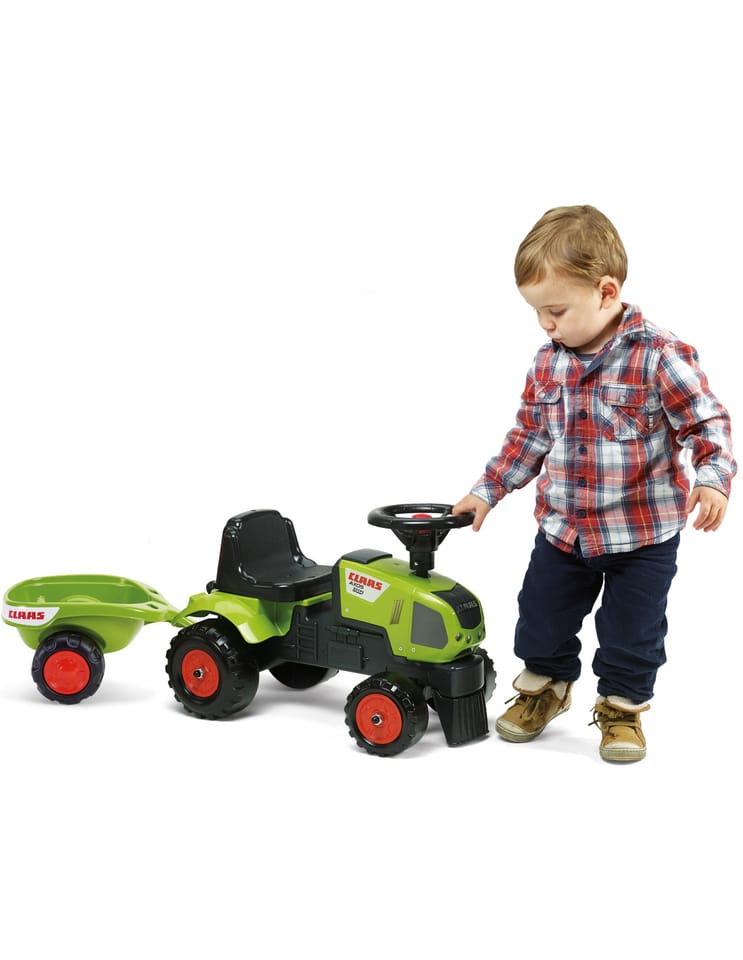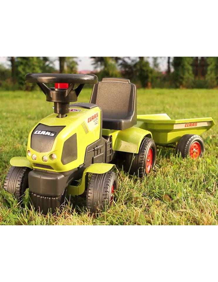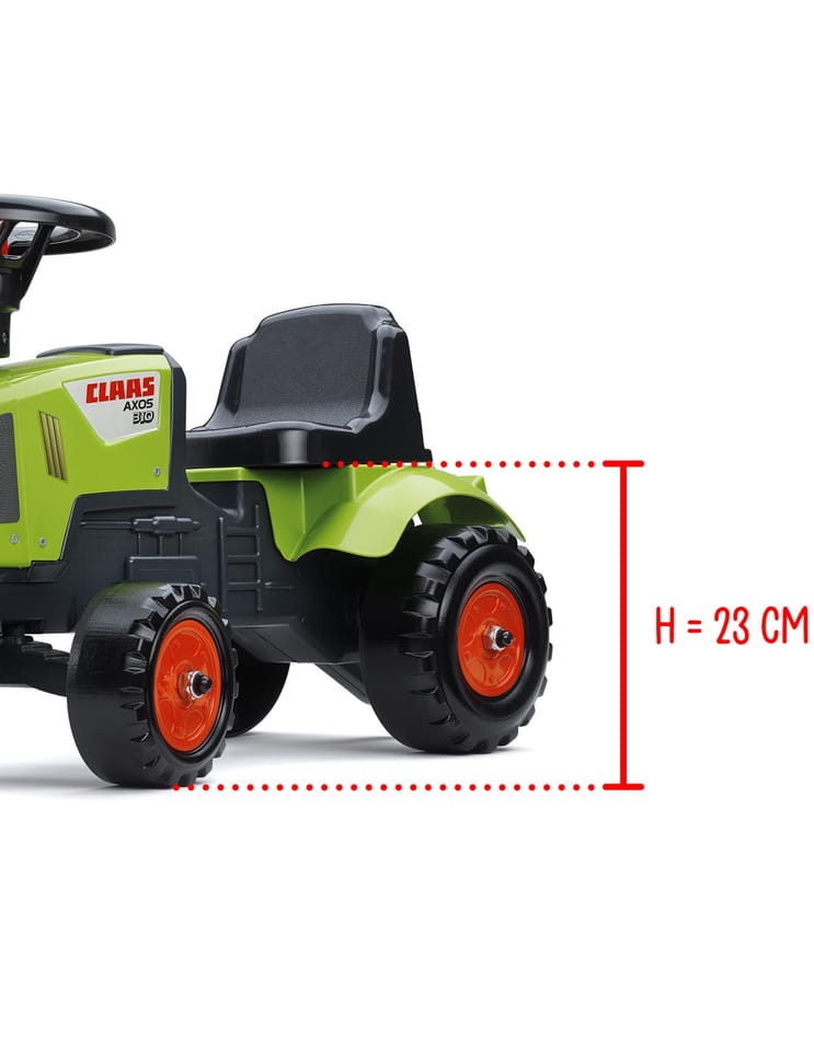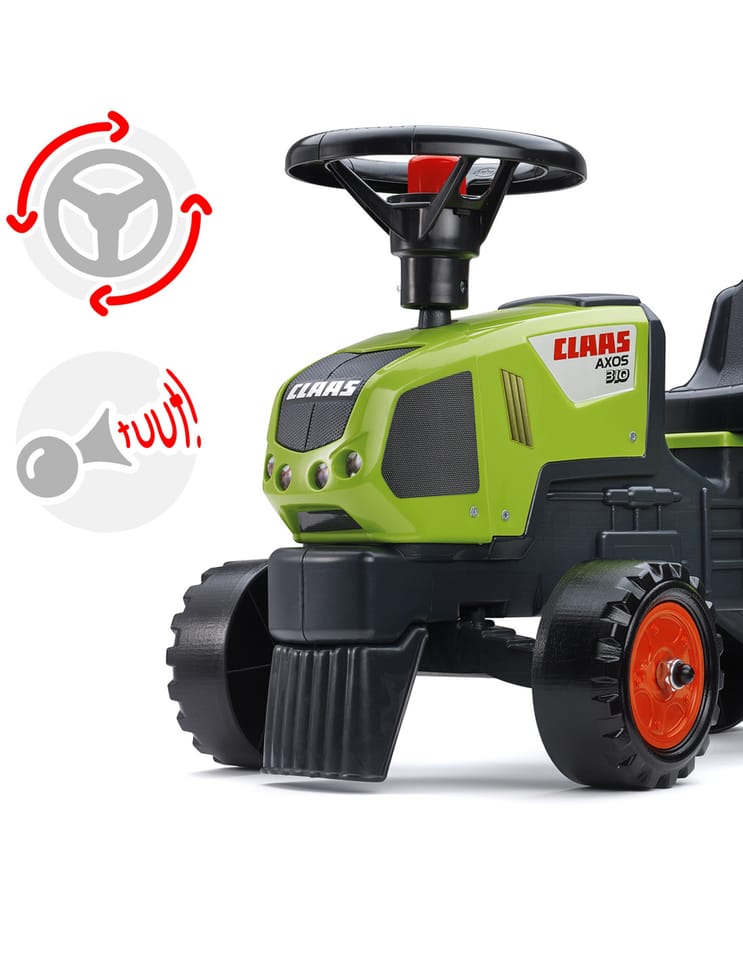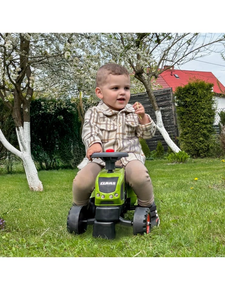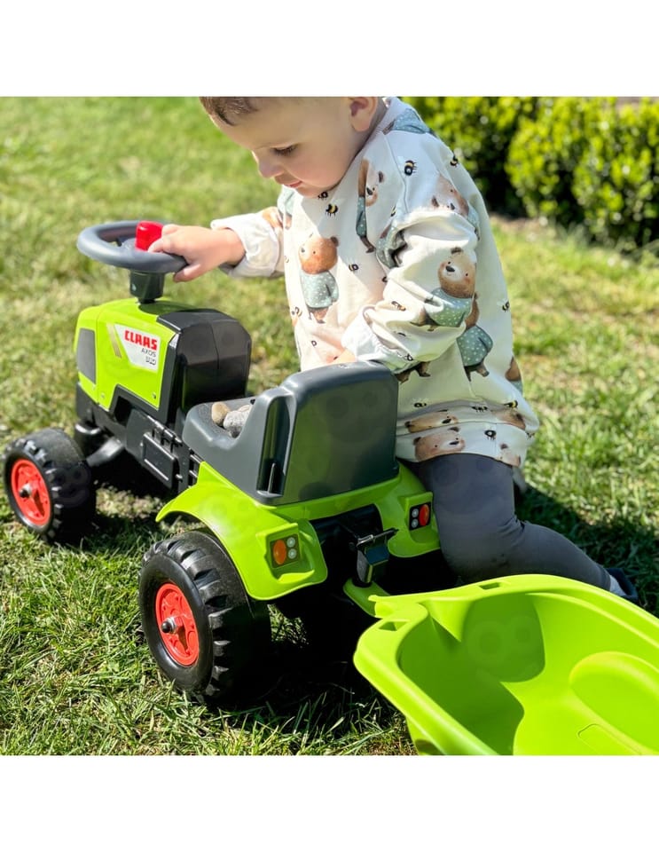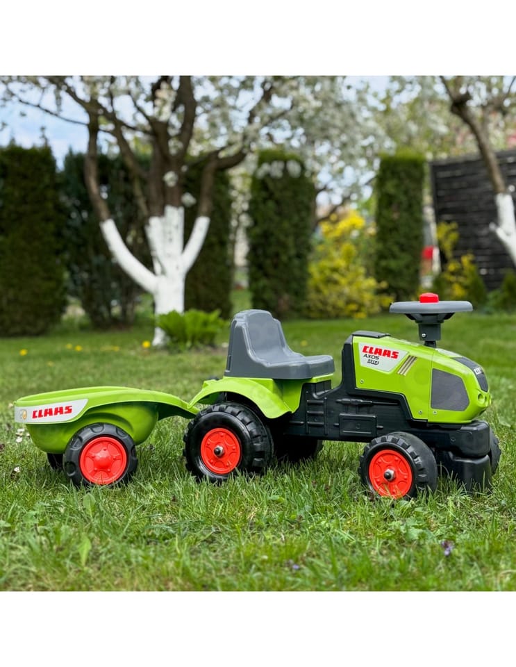 Traktorek Jeździk Baby Claas Axos 310 z przyczepką marki Falk to spełnienie marzeń niejednego małego traktorzysty. Starannie wykonany, z dbałością o najmniejszy szczegół! Żaden prawdziwy Farmer by takim nie pogardził. Pojazd wykonany z najwyższej jakości tworzywa przeznaczony dla dzieci od 12 miesiąca życia. Pojazd jest wyposażony odpinaną przyczepę z panelami oraz kierownicę z klaksonem. Koła traktorka zostały wykonane z wysokiej jakości plastiku.