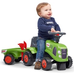 Traktorek Jeździk Baby Claas z przyczepką marki Falk to spełnienie marzeń niejednego małego traktorzysty. Starannie wykonany, z dbałością o najmniejszy szczegół! Żaden prawdziwy Farmer by takim nie pogardził. Pojazd wykonany z najwyższej jakości tworzywa przeznaczony dla dzieci od 12 miesiąca życia. Pojazd jest wyposażony odpinaną przyczepę z panelami oraz kierownicę z klaksonem. Koła traktorka zostały wykonane z wysokiej jakości plastiku. Dodatkowo do traktorka mamy do zabawy dla naszej pociechy grabki oraz łopatkę. Dołączone do traktorka naklejki pozwolą dziecku wybrać swój unikatowy styl. Uśmiechnięta buźka czy standardowa naklejka? Zaskocz wszystkich i naklej na przód pojazdu.
