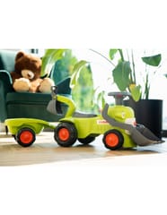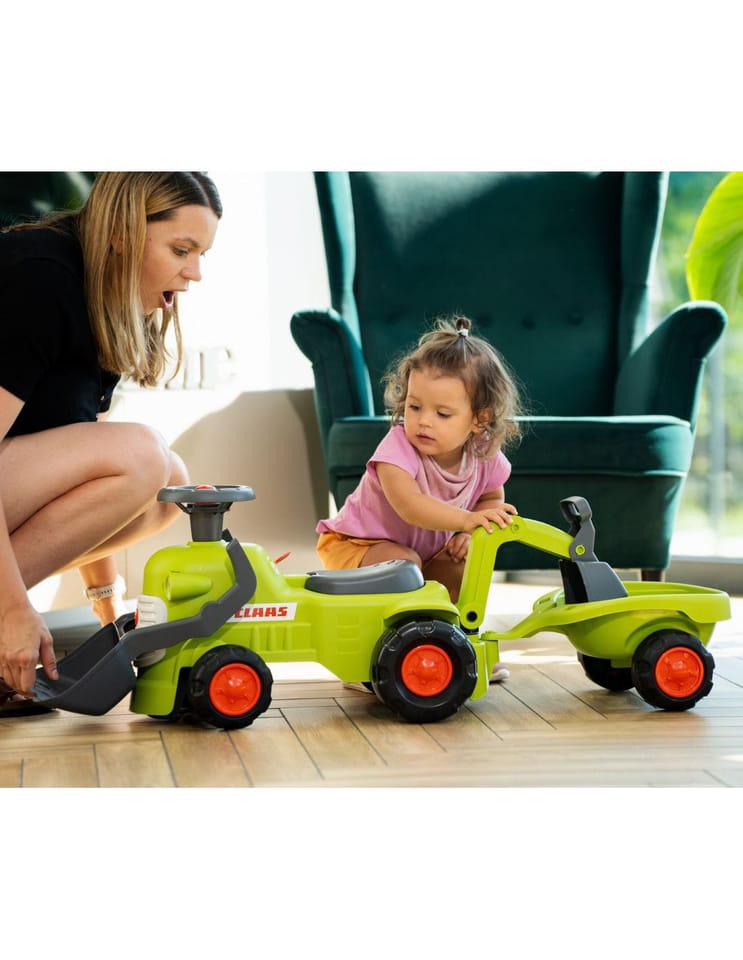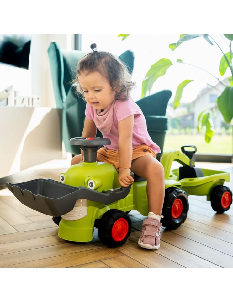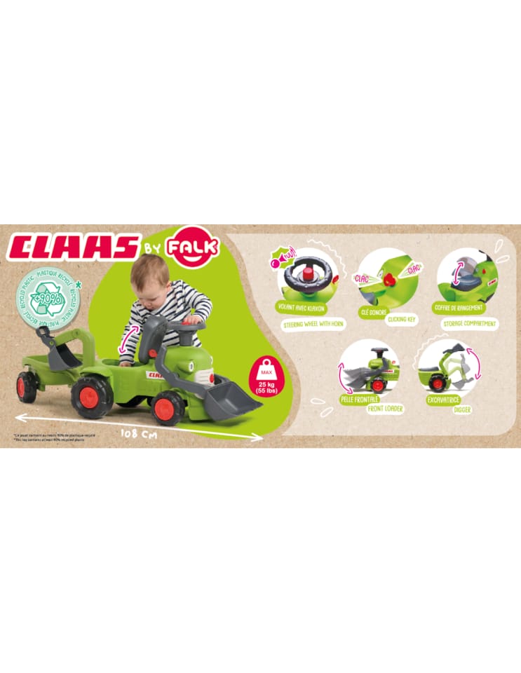 Traktorek Jeździk Class z przyczepką marki Falk to spełnienie marzeń niejednego małego traktorzysty. Starannie wykonany, z dbałością o najmniejszy szczegół. Żaden prawdziwy Farmer by takim nie pogardził. Traktorek CLAAS z łyżką, ładowarką i przyczepką wykonany jest z najwyższej jakości materiałów. Pojazd przeznaczony jest dla dzieci od 12-go miesiąca życia. Pojazd jest wyposażony odpinaną przyczepę z panelami oraz kierownicę z klaksonem.Charakterystyka: