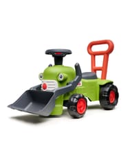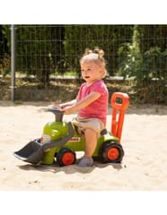 Traktor Claas Vintage Baby od marki Falk to uroczy i sprytny jeździk z ładowaczem, który doskonale sprawdzi się jako pomoc w stawianiu pierwszych kroków dla najmłodszych miłośników maszyn rolniczych. Ten mały jeździk towarzyszy dziecku już od 12 miesiąca życia, wspierając jego rozwój ruchowy. Wyposażony jest w ergonomiczną rączkę do pchania, pełniącą funkcję chodzika. Posiada w pełni funkcjonalny ruchomy ładowacz czołowy, który zwiększa atrakcyjność zabawy, pozwalając na załadunek i rozładunek. Ponadto, kierownica z wbudowanym klaksonem i mały dźwiękowy klawisz stanowią fantastyczne źródło stymulacji. Produkt jest w 100% wyprodukowany we Francji i wykonany w co najmniej 90% z plastiku z recyklingu, co czyni go wyborem przyjaznym dla środowiska.