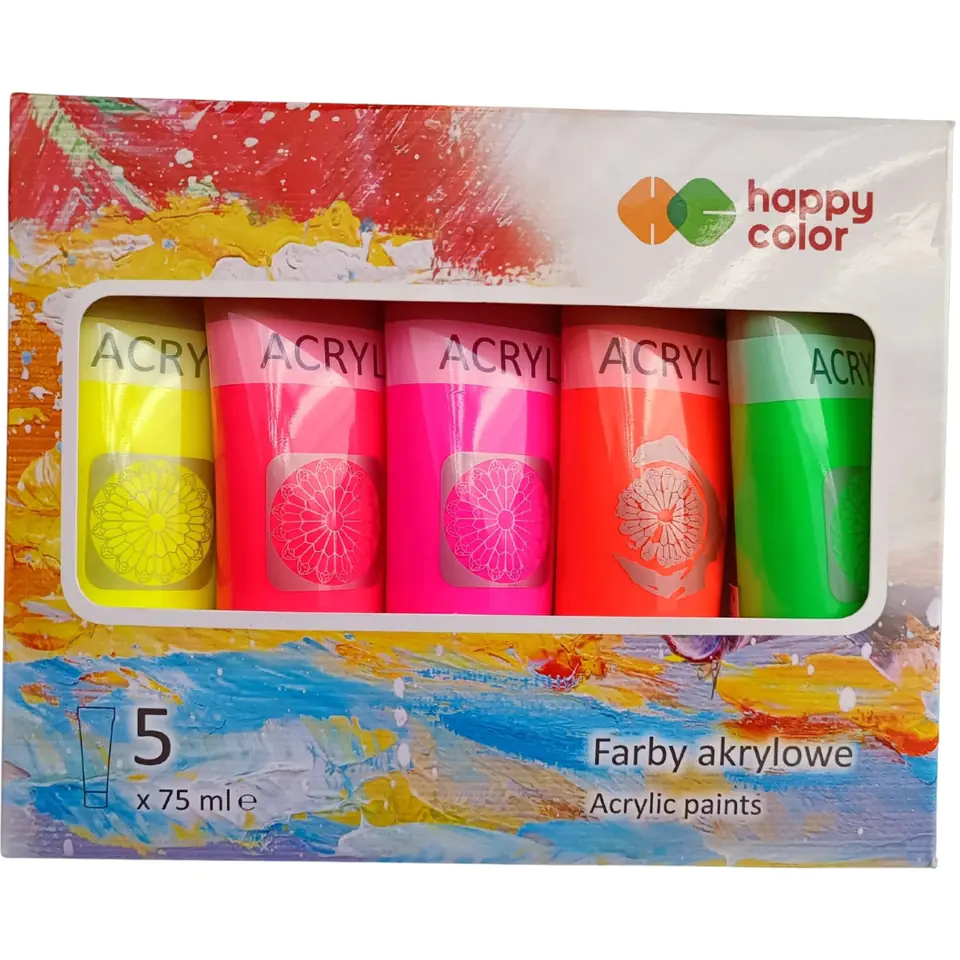 Farby akrylowe 5 kolorów mix neonowy HAPPY COLOUR