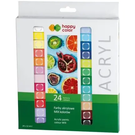 Farby akrylowe Zestaw 24 kolorów 12ml HAPPY COLOR