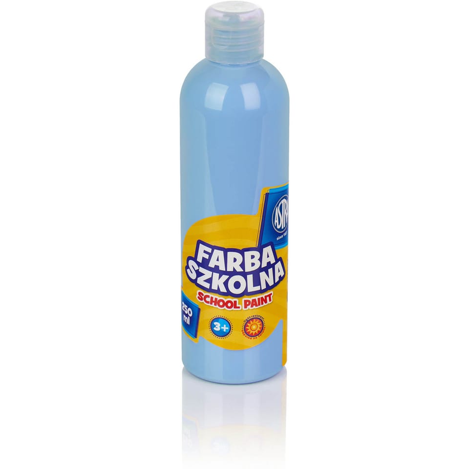 Farba szkolna Astra 250 ml – błękitna Farby plakatowe szkolne Astra do malowania na papierze, kartonie, drewnie, nieglazurowanej ceramice i kamieniu. Farby kryjące są niezwykle wydajne i cechują się soczystymi i niezwykle intensywnymi barwami. Składają się w 98% z naturalnych składników i są odporne na działanie światła i ścieranie. Doskonale sprawdzą się na zajęciach z plastyki w przedszkolu oraz szkole. Wygodna i pojemna buteleczka ułatwia aplikację.