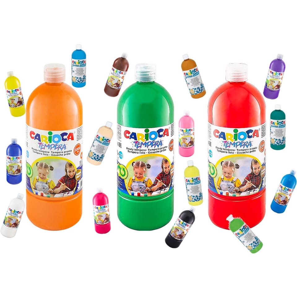 CARIOCA to uznana włoska marka, oferująca wysokiej jakości artykuły szkolne oraz przedszkolne - dzięki niej można zaopatrzyć swoje dziecko w atestowane produkty, które są potrzebne do codziennej zabawy i nauki Farba tempera Carioca 1000ml ciemnoróżowa * tempery to farby wodorozcieńczalne, którymi można malować na wszystkich porowatych powierzchniach: płótnie, papierze, kartonie, tekturze, drewnie, tynku, polistyrenie * wysokiej jakości pigmenty użyte w farbach zapewniają intensywne, wyraziste kolory * po wyschnięciu farby stają się delikatnie matowe a na końcu stają się aksamitne * idealne do nauki i do prac grupowych * łatwo zmywalne * bezzapachowe * szybkoschnące * można je dowolnie mieszać, co pozwala uzyskać nowe kolory i odcienie * możliwość warstwowego malowania i korekt * gotowe do użycia bez dodawania wody * produkowane zgodnie z wymaganiami UNII EUROPEJSKIEJ * przechowywać w temperaturze od 10 do 40°C * butelki wykonane w 30% z materiału pochodzącego z recyklingu * pojemność: 1000 ml * jednostka sprzedaży 1 sztuka