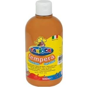 CARIOCA to uznana włoska marka, oferująca wysokiej jakości artykuły szkolne oraz przedszkolne - dzięki niej można zaopatrzyć swoje dziecko w atestowane produkty, które są potrzebne do codziennej zabawy i nauki Farba tempera Carioca 500ml jasnobrązowa * tempery to farby wodorozcieńczalne, którymi można malować na wszystkich porowatych powierzchniach: płótnie, papierze, kartonie, tekturze, drewnie, tynku, polistyrenie * wysokiej jakości pigmenty użyte w farbach zapewniają intensywne, wyraziste kolory * po wyschnięciu farby stają się delikatnie matowe a na końcu stają się aksamitne * idealne do nauki i do prac grupowych * łatwo zmywalne * bezzapachowe * szybkoschnące * można je dowolnie mieszać, co pozwala uzyskać nowe kolory i odcienie * możliwość warstwowego malowania i korekt * gotowe do użycia bez dodawania wody * produkowane zgodnie z wymaganiami UNII EUROPEJSKIEJ * przechowywać w temperaturze od 10 do 40°C * butelki wykonane w 30% z materiału pochodzącego z recyklingu * pojemność: 500 ml * jednostka sprzedaży 1 sztuka