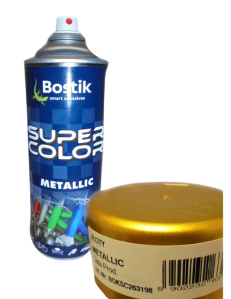 Super Color METALLIC ZŁOTY to modyfikowany lakier akrylowy nawierzchniowy z efektem metalicznym. Uznawany jest, jako farba w sprayu. Lakier jest trwały, o wyrazistym kolorze. Łatwo się nakłada, przy użyciu tylko jednej ręki. Nadaje się do użytku wewnętrznego, jak i zewnętrznego.
