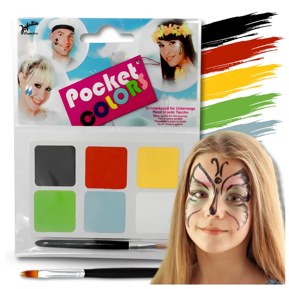 ✅Zestaw zawiera 6 kolorów kosmetyków rozpuszczalnych w wodzie oraz pędzelek.