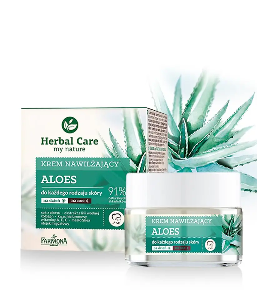Krem nawilżający z aloesem opracowany do pielęgnacji skóry odwodnionej. Skomponowany z cenionych od wieków naturalnych składników roślinnych, które uzupełniają niedobory substancji nawilżających, zatrzymują wodę w głębszych warstwach naskórka i przywracają skórze naturalny, zdrowy koloryt. Skóra z dnia na dzień jest bardziej elastyczna, jedwabiście gładka i nawilżona, bez nieprzyjemnego odczucia ściągnięcia.