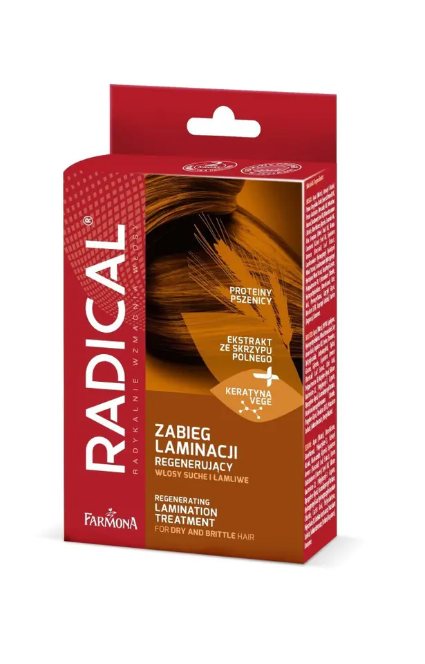 RADICAL® to prawdziwy przełom w pielęgnacji oraz walce z wypadaniem włosów. Ekstrakt ze skrzypu polnego wzmacnia włosy. Proteiny to niezbędny element w ich pielęgnacji, pełniący rolę regenerująco-naprawczą. Zastosowanie emolientów pozwala wygładzić łuski włosa i zamknąć w nim dobroczynne składniki na dłużej. Dzięki dwóm etapom kuracji, włosy w odpowiedniej kolejności są wzbogacane o najcenniejsze dla nich składniki.