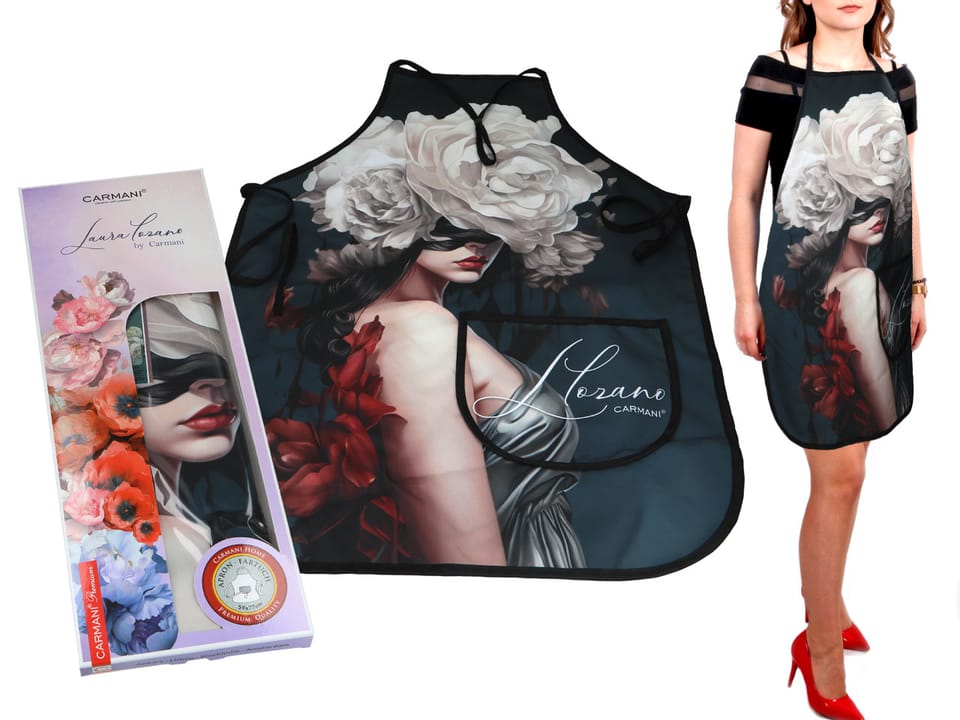 Fartuszek kuchenny - L. Lozano, Kwiaty na głowie CARMANI