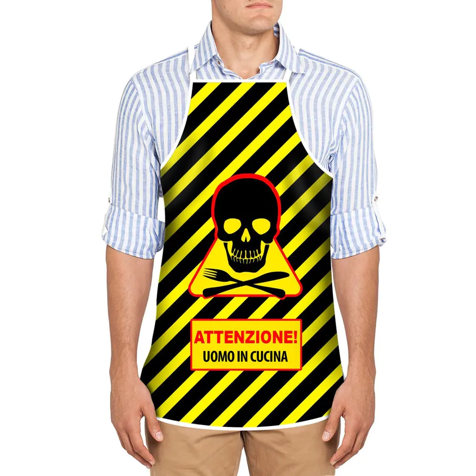 - Napis na produkcie: ATTENZIONE! Uomo in cucina. Produkt we włoskiej wersji językowej. Materiał: poliester wzbogacony o powłokę odbijającą płyny. Mocna tkanina, która nie przepuszcza płynu. Odporna na zabrudzenia. Wymiary: rozmiar uniwersalny, rozmiar można regulować. Można prać w temperaturze 30 stopni. OSTRZEŻENIA:Trzymać z dala od ognia! Wymiary w opakowaniu: 0,5 x 23,0 x 34,0 (cm).Waga: 0,08 kg. Wyprodukowano w Polsce.