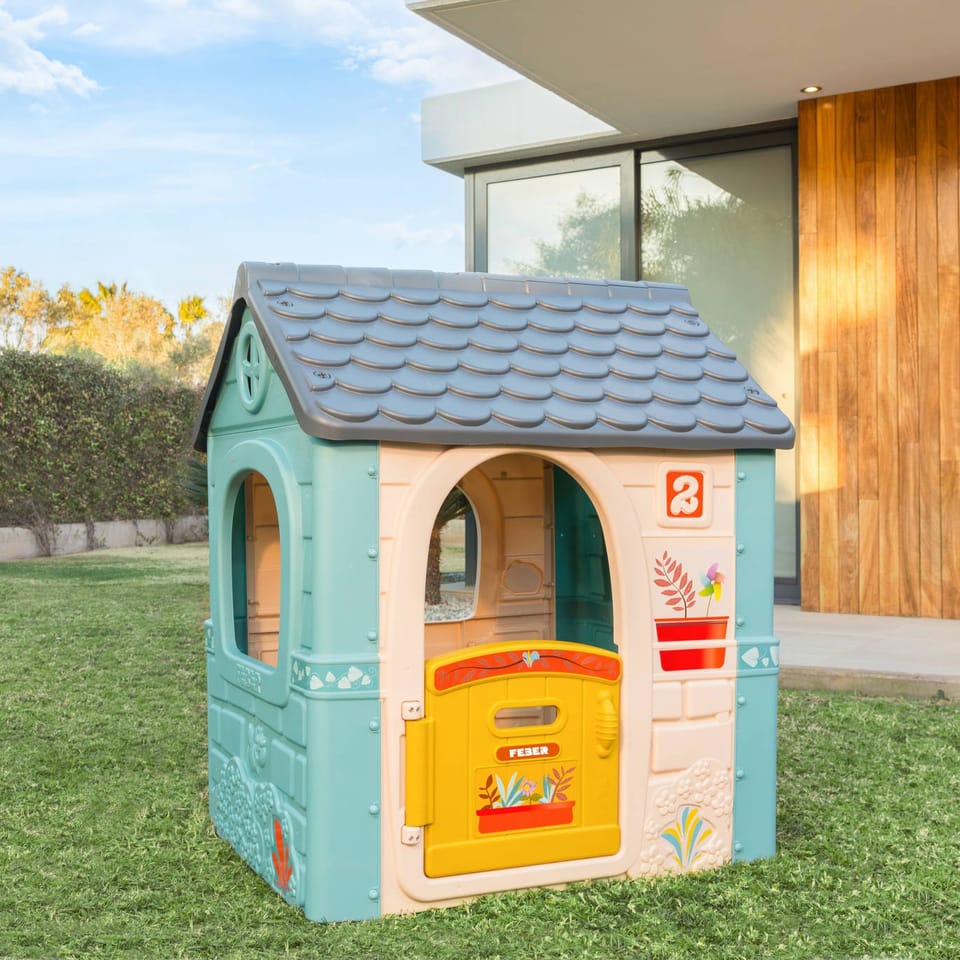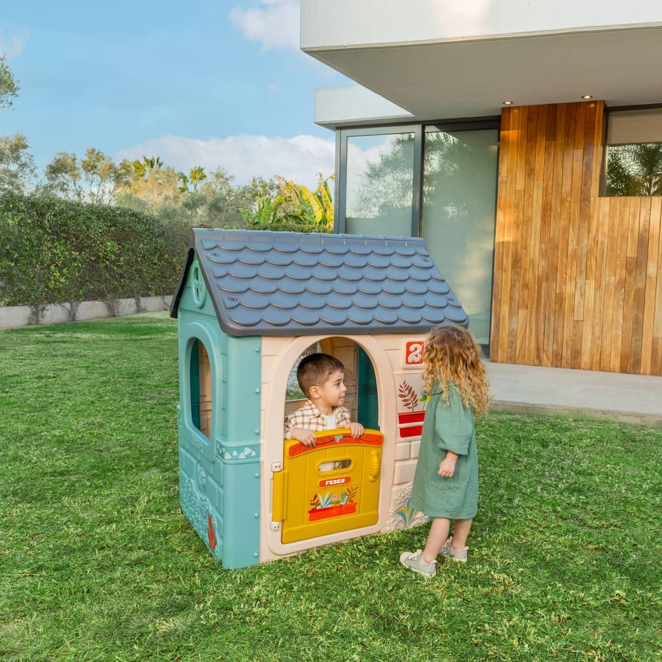 Domek ogrodowy Casual marki FEBER wyróżnia się stonowaną kolorystyką, która przyciąga uwagę i jednocześnie harmonijnie komponuje się z otoczeniem ogrodu. Pastelowe odcienie niebieskiego, zielonego i żółtego tworzą przyjemną dla oka paletę, która sprzyja relaksowi i kreatywnej zabawie. Stonowane barwy domku są odporne na blaknięcie dzięki zastosowaniu powłoki ANTI-UV, co zapewnia, że domek będzie wyglądał estetycznie przez długi czas, niezależnie od warunków pogodowych.