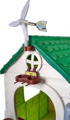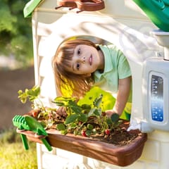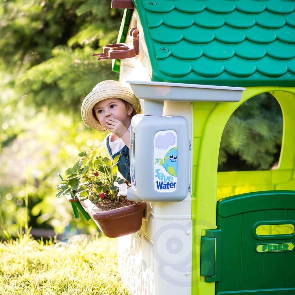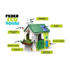 Domek FEBER ECO to domek zabaw, w którym znajdują się wszystkie aktywności potrzebne maluchom do wzbudzenia ciekawości w przyrodzie. Świetne miejsce i świetna nauka dla dzieci! W zestawie 2 kosze do recyklingu (żółty i niebieski), mały ogródek (w doniczkach) i narzędzia. To świetna aktywność na świeżym powietrzu dla dzieci. Można bawić się w sadzenie nasion i obserwowanie wzrostu roślin. Wyposażony jest również w gniazdo i karmnik dla ptaków. A woda deszczowa jest idealna do podlewania roślin lub kwiatów. Wiatrak i imitacja panelu słonecznego dają niesamowite funkcje do nauki o zrównoważonych energiach! Odporne, łatwe w montażu i wyposażone w system Anti UV zapobiegający utracie koloru i zwiększający odporność tworzywa.