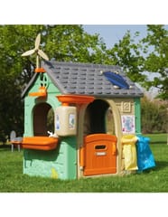 Ekologiczny Domek Edukacyjny od marki FEBER to wyjątkowa propozycja zabawy, która łączy w sobie radość z nauki o zrównoważonym rozwoju i ochronie środowiska. Ten innowacyjny domek dla dzieci został zaprojektowany z myślą o przyszłości naszej planety – wykonano go w co najmniej 90% z plastiku pochodzącego z recyklingu. Zabawa w tym domku to doskonała okazja, by przybliżyć najmłodszym tajniki natury oraz wyrobić w nich proekologiczne nawyki w niezwykle atrakcyjny sposób. Konstrukcja jest bardzo wytrzymała, a jej kolory wykazują wysoką odporność na działanie promieni słonecznych oraz zmiany temperatur, co gwarantuje wspaniały wygląd przez długi czas. Montaż domku jest intuicyjny i niezwykle prosty.