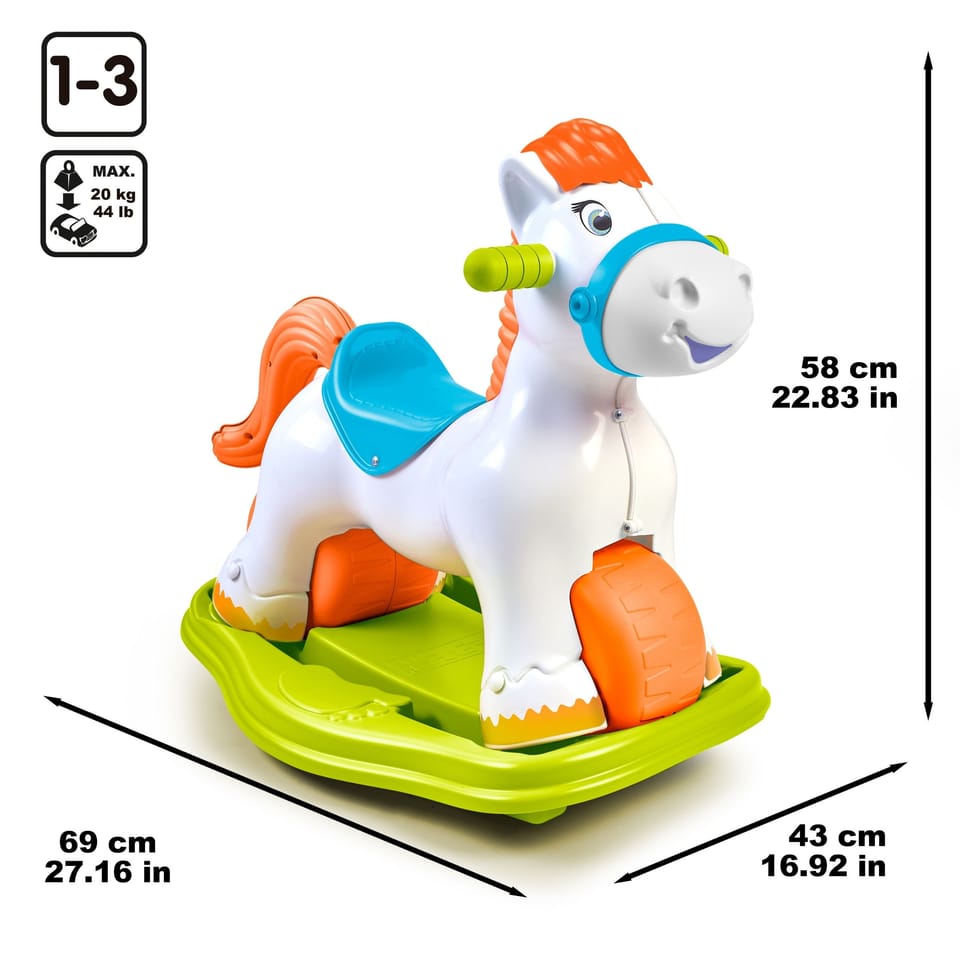 Odkryj Jeździk 2w1 od marki FEBER – uroczy konik, który rośnie razem z Twoim dzieckiem! To bujak i jeździk w jednym, zapewniający godziny wspaniałej zabawy. Stabilna konstrukcja, efekty dźwiękowe sprawią, że każda chwila zabawy będzie pełna radości. Dzięki zabawce maluch rozwija swoje umiejętności psychomotoryczne, jednocześnie czerpiąc ogromną frajdę z zabawy.