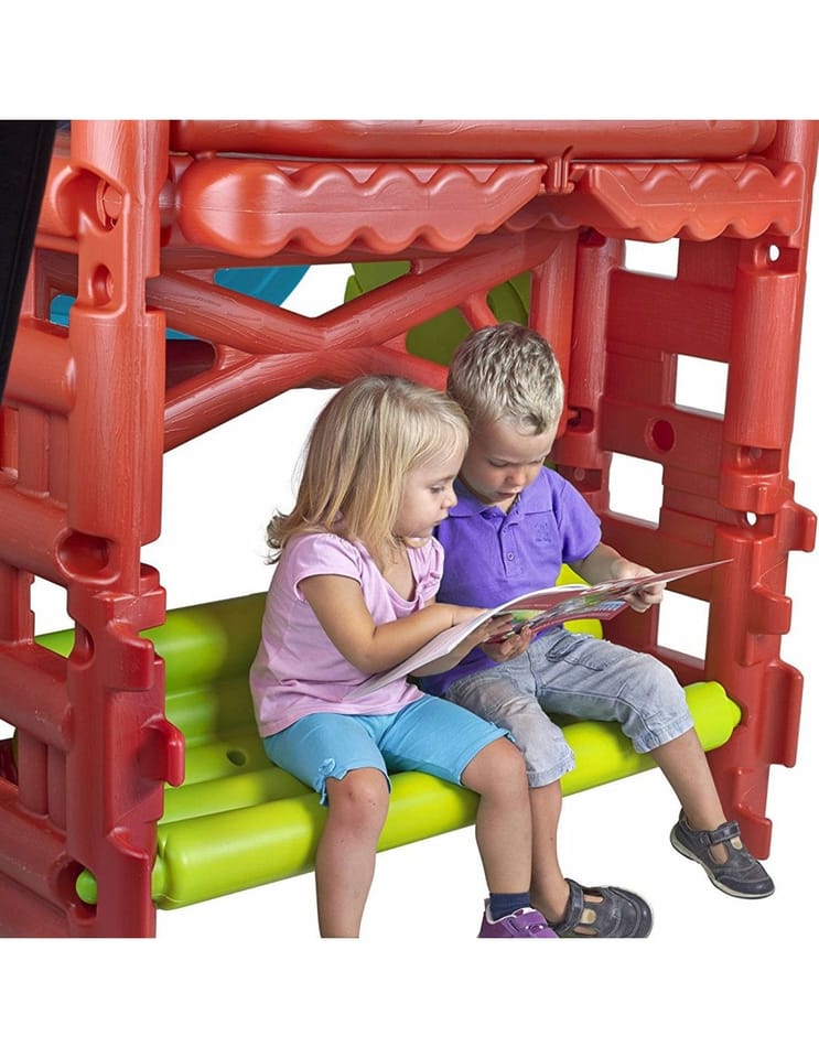 FEBER Wood House to wielofunkcyjne centrum aktywności, które zostało zaprojektowane, aby zachęcić dzieci do ruchu i radosnej zabawy na świeżym powietrzu. Ten solidny plac zabaw łączy w sobie wiele funkcji, oferując maluchom różnorodne wyzwania ruchowe. Produkt charakteryzuje się wysoką odpornością na warunki atmosferyczne, w tym promieniowanie słoneczne oraz zmiany temperatury, dzięki czemu zachowuje swoje intensywne kolory przez długi czas. Konstrukcja jest wytrzymała, stabilna i łatwa w montażu, co gwarantuje bezpieczeństwo podczas użytkowania.