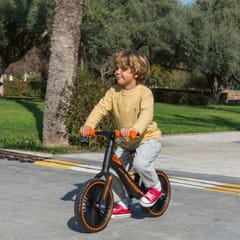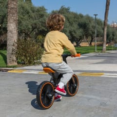 Dla dziecka, które jeszcze nie opanowało jazdy na klasycznym rowerze z pedałami, rowerek biegowy to idealne rozwiązanie na rozpoczęcie przygody z dwukołowcem. Pozbawiony pedałów, uczy utrzymywania równowagi i pomaga rozwijać zdolność koordynacji ruchowej – kluczową w dalszej nauce jazdy na zwykłym rowerze.Rowerek został zaprojektowany z myślą o najmłodszych - nisko osadzona, profilowana rama ułatwia samodzielne wsiadanie i zsiadanie z rowerka. Regularny ruch od najmłodszych lat wspiera zdrowy rozwój, a jazda na rowerku biegowym to nie tylko korzyści fizyczne. Taka aktywność angażuje obie półkule mózgu, co wspiera także rozwój poznawczy. Właśnie dlatego warto zacząć rowerową przygodę już w pierwszych latach życia.