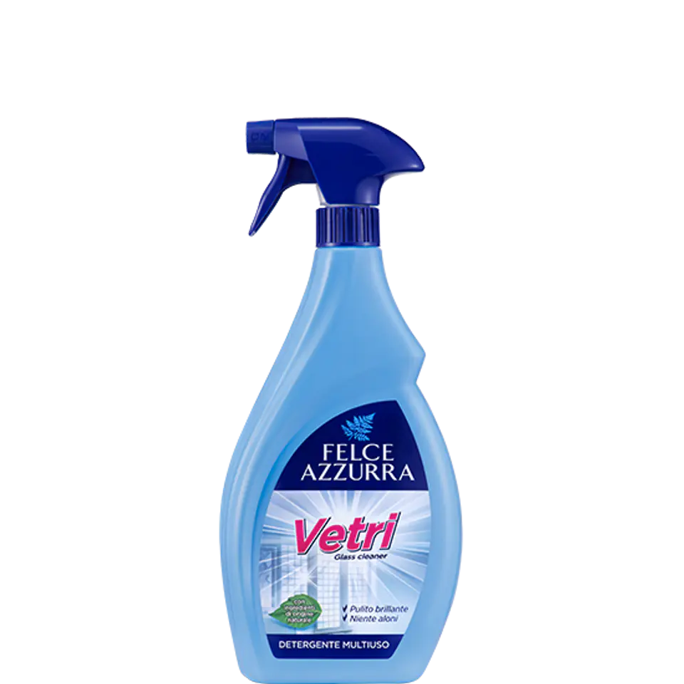 Płyn do mycia okien Felce Azzurra, dzięki swojej wzbogaconej formule, doskonale czyści różnego rodzaju szklane powierzchnie, czyniąc je krystalicznie czystymi