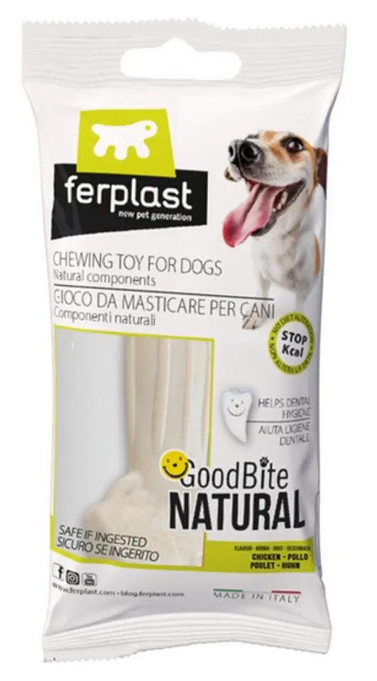 Linia GoodBite Natural oferuje zabawki do żucia w różnych rozmiarach oraz różnych smakach: wołowina, szynka, kurczak, płatki zbożowe, baranina i łosoś. Zabawki GoodBite są wykonane z naturalnych składników, nietoksyczne i biodegradowalne. Ich żucie nie zmienia diety Twojego psa i ma działanie odstresowujące oraz pomaga utrzymać zęby psa w czystości.Zalety:
