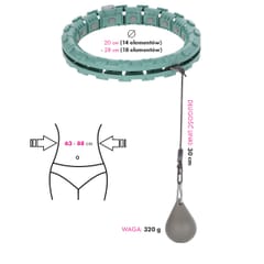 FH03 jest regulowanym hula-hop z masującymi talię wypustkami i piłką grawitacyjną do fitnessu. Pozwala na trening mięśni core jednocześnie masując talię. Dzięki regulacji obwodu FH03 dopasuje się do każdego typu sylwetki, dzięki czemu będzie mógł nam służyć na każdym etapie budowania naszej sylwetki! Urządzenie dedykowane jest zarówno dla dzieci jak i dorosłych. Jak działa FH03 FH 03 jest niesłychanie proste i intuicyjne w swoim działaniu. Całość opiera się na pracy piłki grawitacyjnej wewnątrz zamkniętej szyny. Biodra pracują w identyczny sposób jak w tradycyjnym hula-hop, jednak dzięki dopasowaniu obwodu do talii obręcz nie spada i nawet osoby początkujące są w stanie efektywnie trenować. Uwaga: przed użyciem klamra powinna być szczelnie zamknięta. Trening i masaż w jednym: Poprzez wykonywany ruch 360 stopni, sprężyny znajdujące się w głowicach umieszczonych po całym obwodzie pętli doskonale amortyzują przeciążenia oraz dostosowują się do ciała, co powoduje dodatkowy efekt masażu zapewniając ciału przyjemne uczucie. Trójwymiarowa technika masażu szybko pobudza mięśnie. Wbudowane wypustki o specjalnie opracowanym wyglądzie posiadają absorpcje wstrząsów dla komfortowego treningu. Dozuj intensywność wibracji poprzez szybkość obracania. Regulacja obwodu: Zmiana rozmiaru koła jest niesłychanie szybka i wygodna, wystarczy dodać lub odjąć odpowiednią ilość elementów. FH03 posiada łącznie 18 elementy. Rozmiar można ustawić w zakresie od 14 do 18 elementów, czyli obwód w talii od 63cm do 88cm. Komfort użytkowania: Urządzenie posiada konstrukcję wykonaną z wysokiej jakości PVC. Szyna osadzona jest na solidnych płozach. Dzięki temu obrót ciężarka dookoła obręczy jest łagodny i cichy. Kompaktowe rozmiary i łatwy montaż: Pętlę otwieramy za pomocą zaczepów. Następnie aby połączyć kolejne elementy należy wsunąć jeden element w drugi tak aby wypustki trafiły w odpowiednie otwory. Przy redukcji elementów, należy jedną ręką chwycić za odpowiedni element i ścisnąć w taki sposób aby wysunąć wypustki z otworów. Następnie należy wsunąć do pętli szynę z piłką grawitacyjną, zamknąć klipsy na magnes i gotowe. Zalety treningu z hula-hop : Trening z FH03 nie tylko odchudzi brzuch ale i wysmukli talię. Dodatkowo zredukuje również tkankę tłuszczową z okolic ud i pośladków. Ponadto pomoże wzmocnić obręcz barków. Następną zaletą jest wyraźna poprawa postawy ćwiczącego poprzez wzmocnienie mięśni brzucha oraz tułowia. Już pół godziny nieprzerwanego treningu z FH03 odpowiada jednej godzinie pływania lub trzem godzinom biegania! EFEKTY ĆWICZEŃ: Smukła talia Płaski brzuch Redukcja cellulitu Zgrabne ramiona Jędrne uda i pośladki Lepszy przepływ krwi Poprawa postawy Specyfikacja: Materiał: PVC Kolor: Zielony Regulacja obwodu: 13 - 18 elementów Talia: 63cm - 88cm średnica wewnętrzna 20cm - 28cmśrednica zewnętrzna 28cm - 36cmśrednica jednego elementu 4cm Waga obciążenia: 320g. Długość paska z obciążeniem: 15-30cm Łożyska staloweFunkcje wyświetlacza LCD: ilość powtórzeń Absorpcja wstrząsów: TAK Rozmiar w pudełku: wys. 39cm x szer. 30cm x gł. 9cm Uwagi: Nie przeznaczona do użytku komercyjnego 24 miesięczna gwarancja Importer: Abisal Sp. z o.o.| Polska | 41-807 Zabrze | ul. Pyskowicka 17 | e-mail: abisal@abisal.plAbisal Sp. z o.o. deklaruje, iż produkty sprzedawane przez firmę są bezpieczne i spełniają wymagania zawarte w Ustawie o ogólnym bezpieczeństwie produktów z dnia 12 grudnia 2003r. (Dz.U. z dnia 31 grudnia 2003r.)