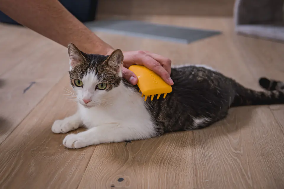 Szczotka wykonana z miękkiego tworzywa, które charakteryzuje się dużą przyczepnością. Bezpieczna w użyciu, łatwa w utrzymaniu w czystości.Dzięki zastosowaniu odpowiedniego tworzywa oraz kształtu włosia dociera ona do dolnej warstwy sierści – podszerstka. Służy zarówno do wyczesywania jak i do masażu. Wysoka elastyczność, duża adhezja (przyczepność) pozwalająca usunąć martwy podszerstek