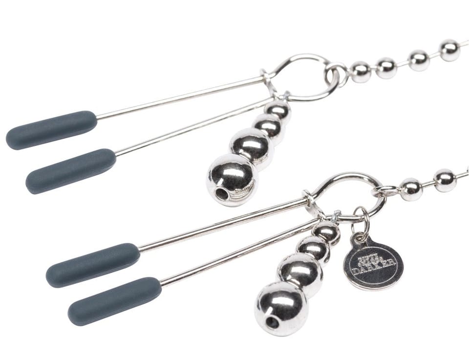 Odkryj funkcjonalny i stylowy zestaw zaciskow marki Fifty Shades of Grey z kolekcji Darker At My Mercy. Ten model to połączenie solidnej konstrukcji z anatomicznym dopasowaniem, ktore zapewnia komfort i bezpieczeństwo podczas użytkowania. Zaciski posiadają płynną regulację siły docisku, umożliwiając precyzyjne dostosowanie do indywidualnych preferencji.