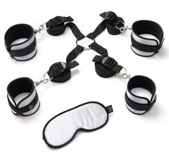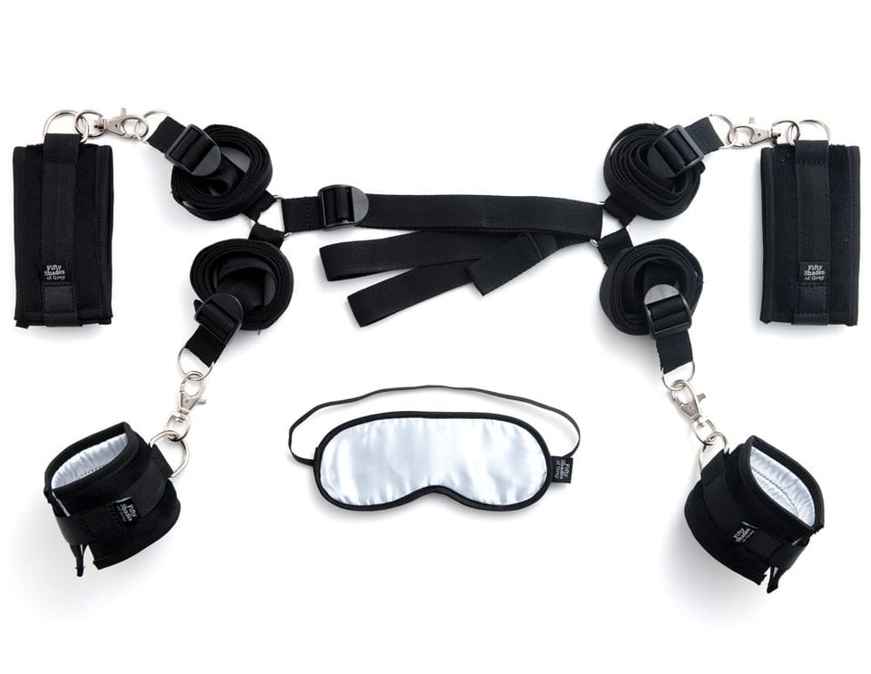 Zestaw pasow do łożka z kajdankami Fifty Shades of Grey Hard Limits to kompletny system opasek i pasow, inspirowany oficjalną kolekcją bestsellerowej serii. Pozwala w prosty i wygodny sposob zamienić tradycyjne łożko w miejsce do wyprobowania nowych form wzajemnych ograniczeń ruchu.