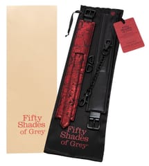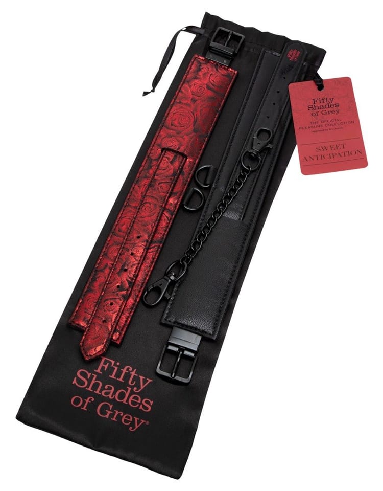 Miękka wyściołka zapewnia komfort podczas noszenia, a regulowany system zapięć pozwala na idealne dopasowanie do każdego rozmiaru kostki. Łańcuszek z obustronnymi klipsami pozwala na szybkie i wygodne rozpinanie, a solidne metalowe okucia wykonano z materiału bez dodatku niklu. Każdy mankiet wyposażono w D-ring, zapewniający dodatkowe możliwości zastosowania. Wyjątkowy charakter produktu podkreśla wyszywane logo Fifty Shades of Grey oraz elegancka, markowa torba do przechowywania, dołączona w zestawie.