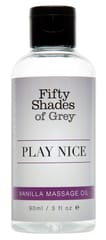 Fifty Shades of Grey Play Nice Olejek do masażu Wanilia 90ml to wyjątkowy produkt stworzony z myślą o relaksujących masażach w domowym zaciszu. Ten wysokiej jakości olejek o subtelnym zapachu wanilii został opracowany, aby zapewnić komfortową aplikację i optymalny poślizg dłoni podczas masażu, co pozwala na wydajne i łatwe rozprowadzanie produktu po skorze.