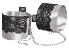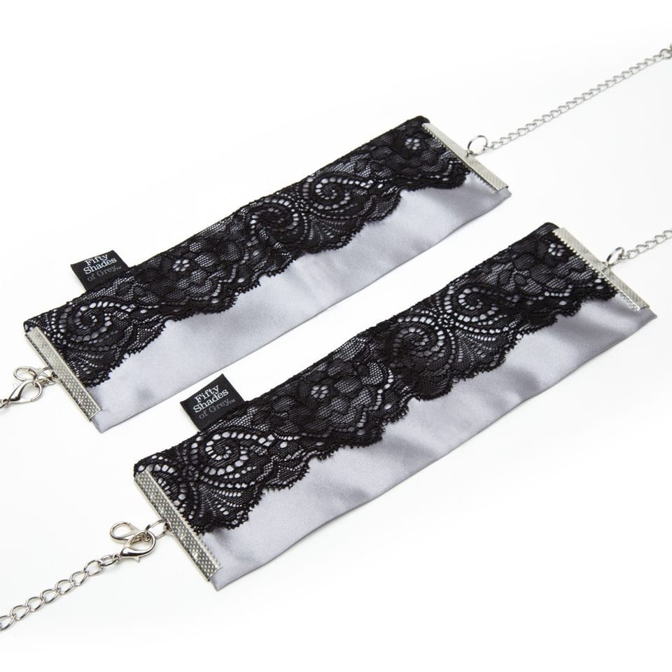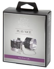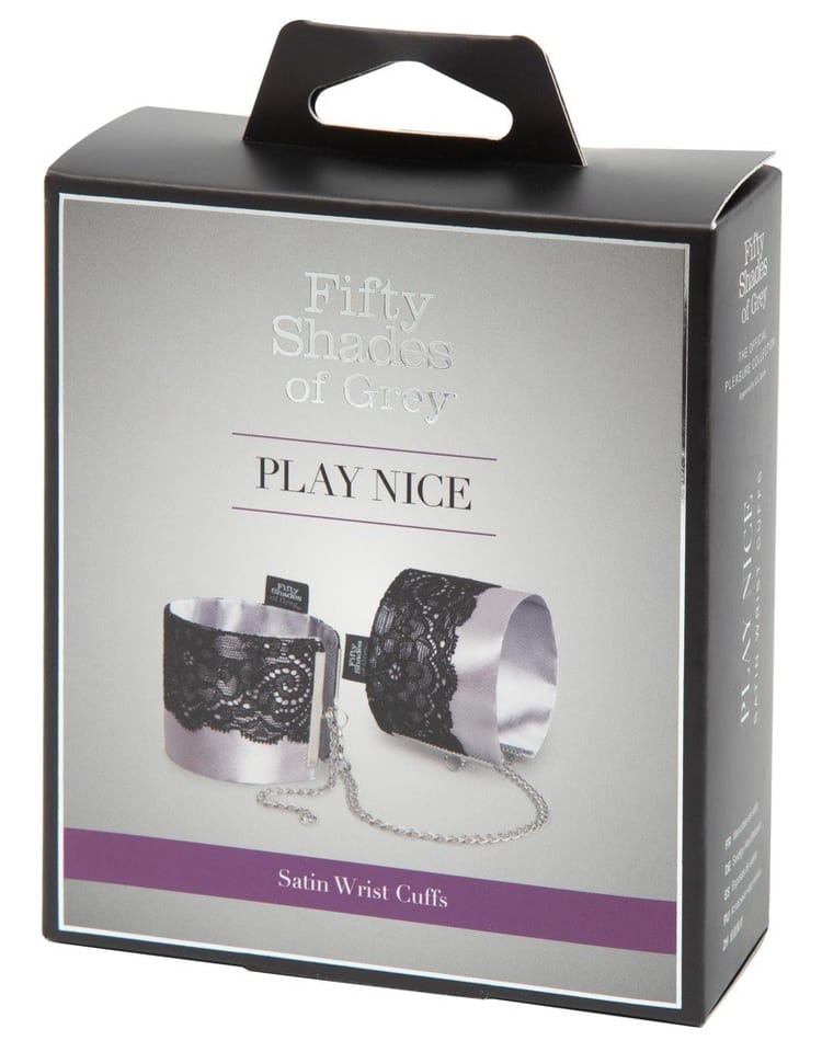 Fifty Shades of Grey Play Nice – eleganckie mankiety na nadgarstki inspirowane bestsellerową serią, stworzone z myślą o stylowym i komfortowym użytkowaniu. Wykonane z wyjątkowo miękkiej, satynowej tkaniny oraz ozdobione delikatną czarną koronką, stanowią połączenie wyrafinowanego wzornictwa i funkcjonalności. Dzięki solidnym zapięciom na karabińczyki zapewniają łatwość użytkowania oraz bezpieczeństwo. Ich szeroka regulacja w zakresie od 21,6 cm do 31,8 cm umożliwia idealne dopasowanie do rożnych obwodow nadgarstkow.