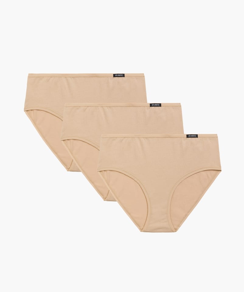 Figi damskie o klasycznym kroju. Wysoka talia i zabudowane boki oraz perfekcyjne dopasowanie do ciała. Miękka i nieuciskająca lamówka w talii, wysokiej jakości bawełna z elastanem. Pakowane po 3 sztuki. Skład: 95% bawełna, 5% elastan.