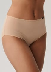 Figi z wysokim stanem oraz szerokim bokiem, otulają ciało i dają poczucie swobody ruchów. Delikatna, wąska guma sprawia, że bielizna nie uciska i nie podrażnia. Skład: 95% bawełna, 5% elastan.