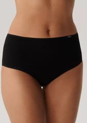 Figi z wysokim stanem oraz szerokim bokiem, otulają ciało i dają poczucie swobody ruchów. Delikatna, wąska guma sprawia, że bielizna nie uciska i nie podrażnia. Skład: 95% bawełna, 5% elastan.